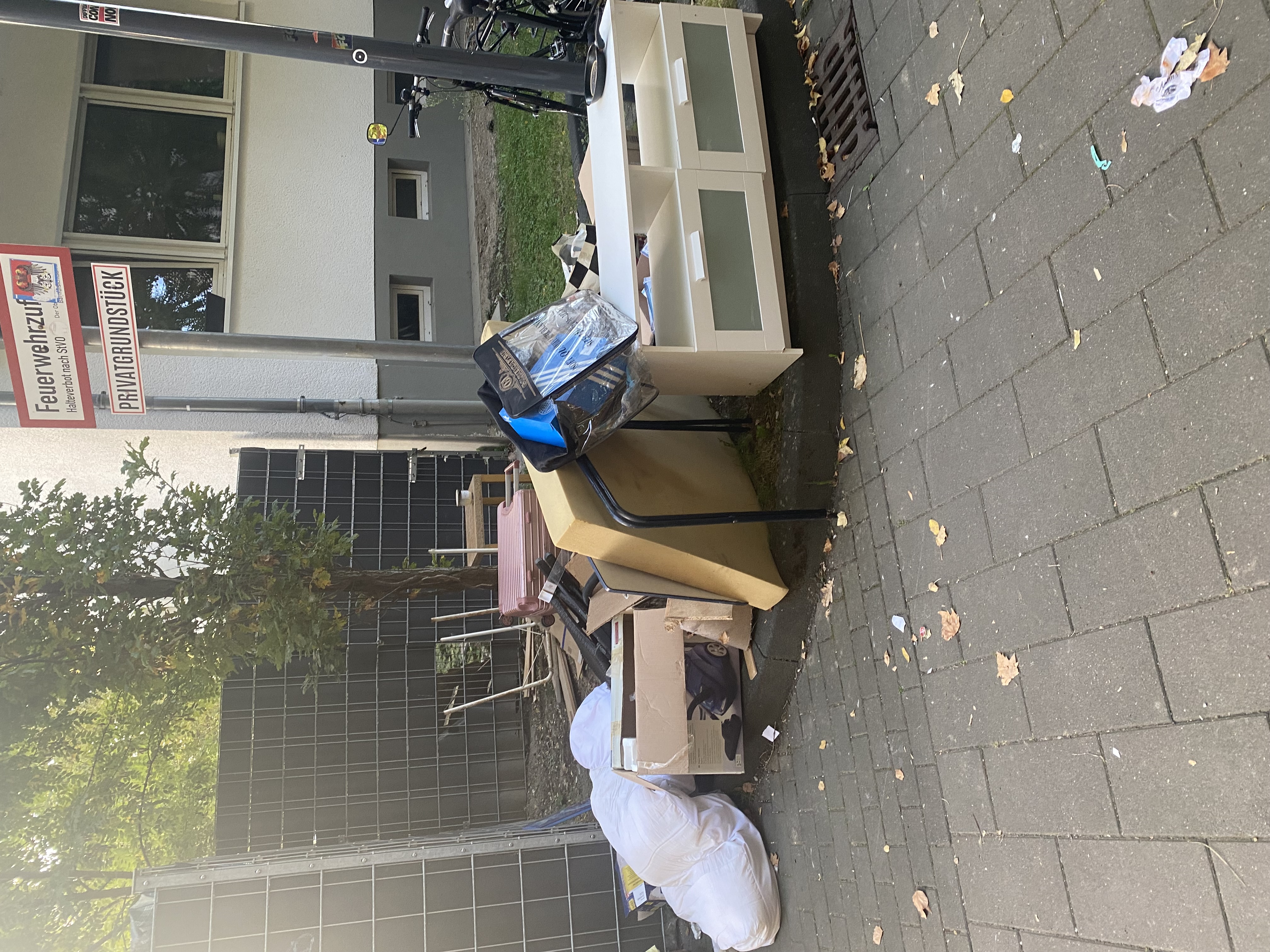 Möbel und weiterer Müll an der Ecke der Müllcontainer vom Studiwohnheim.