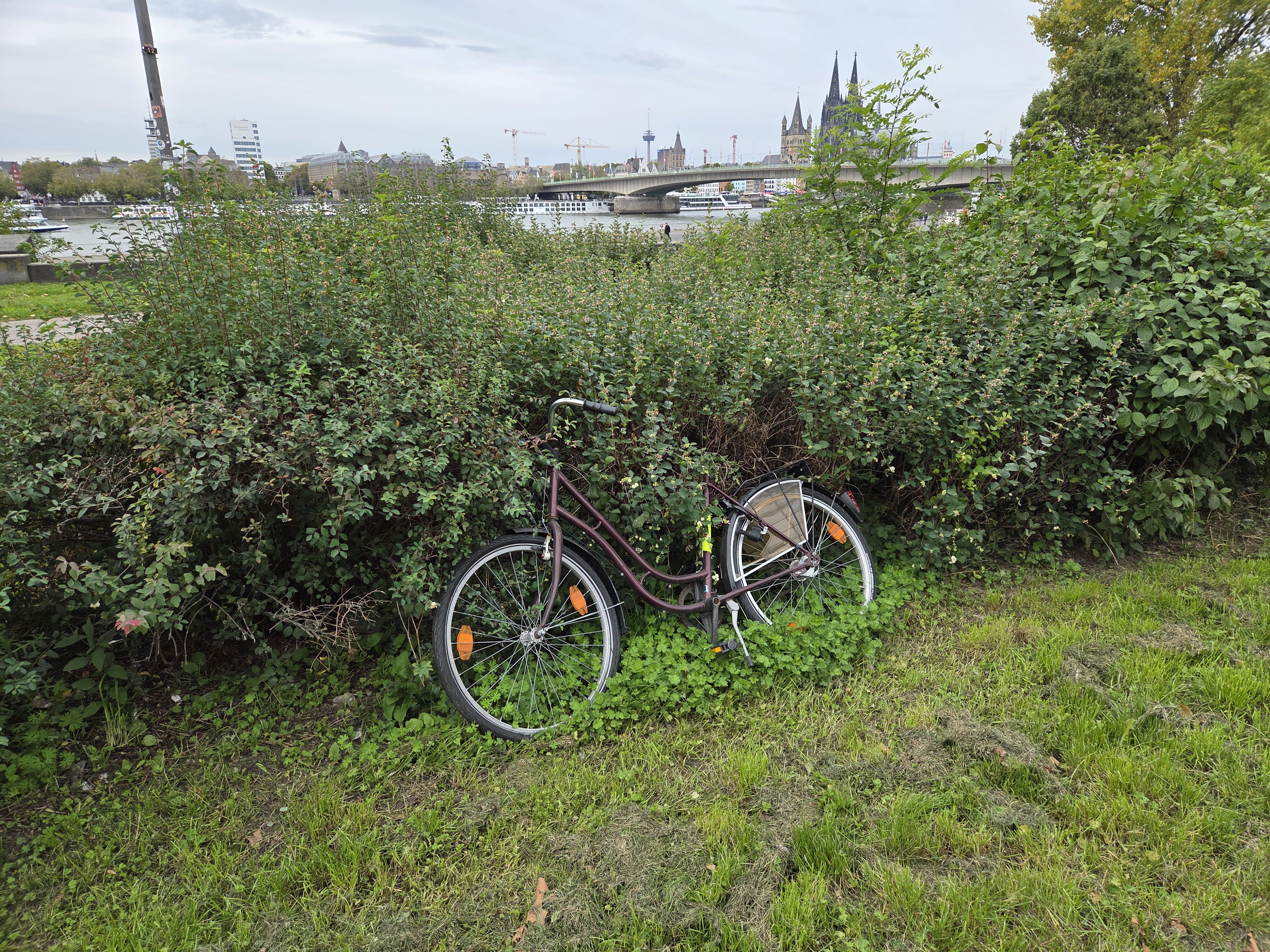 Altes Fahrrad im Gebüsch gegenüber Siegburger Str 77.