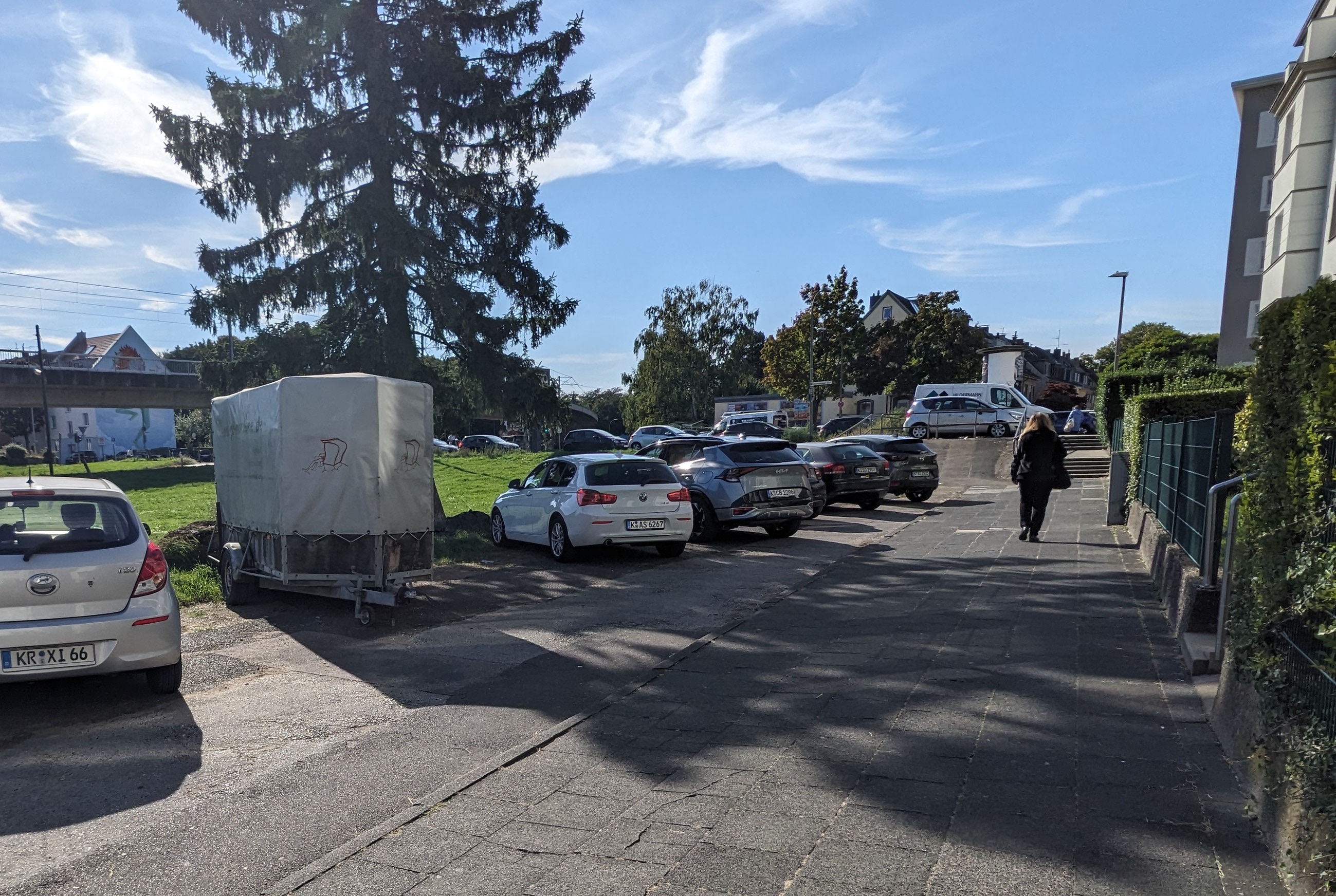 gesamter bereich 24/7 komplett zugeparkt, obwohl hier eine straße ist, und eine durchfahrt/rampe für behinderte & radfahrer, weiterhin ist die zufahrt zum diagonalparken nur durch illegales befahren des gehweges möglich