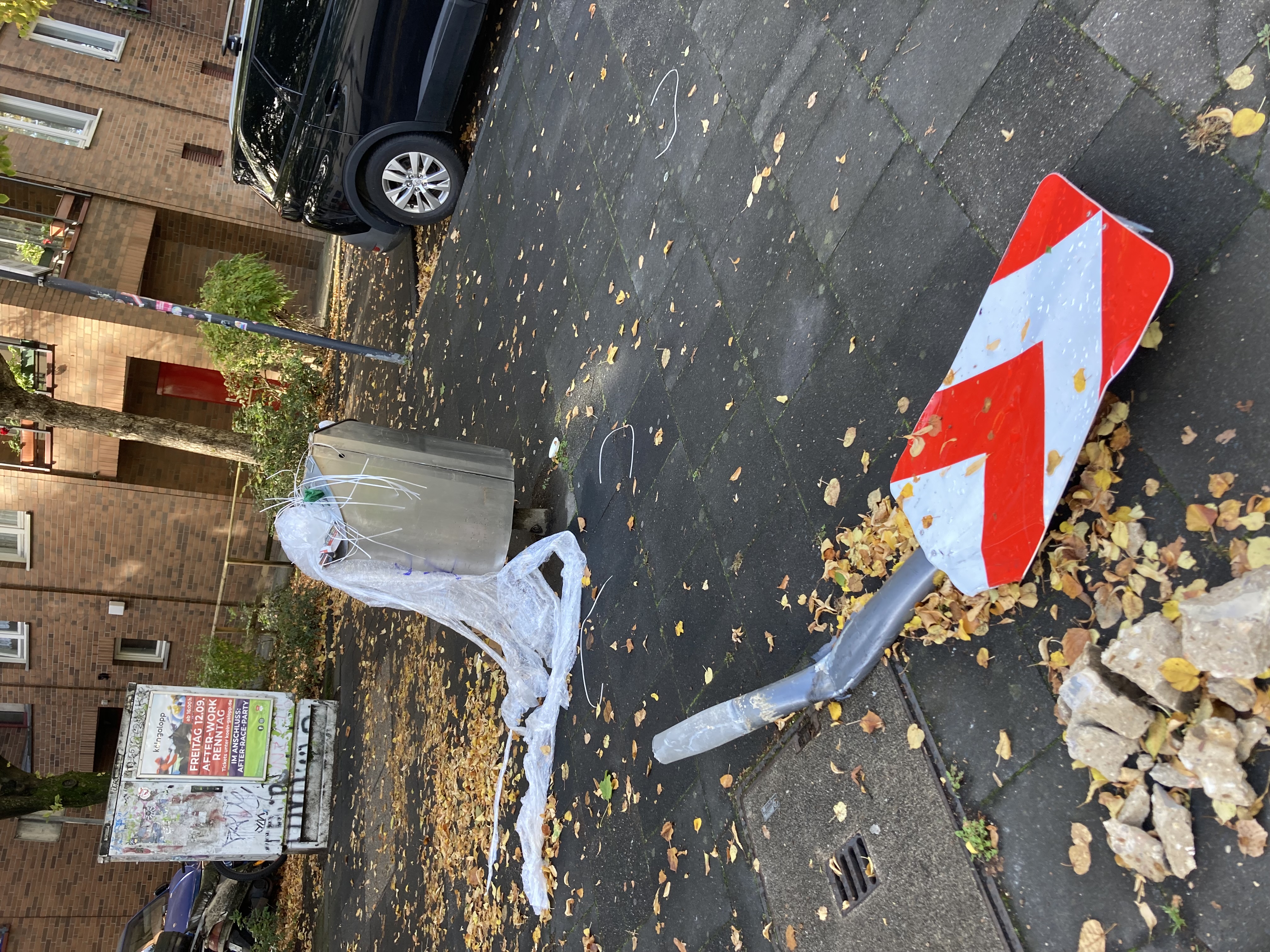 Wilder Müll und angefahrenes Verkehrsschild (herum liegend, mit Betonfuß! Ecke Neusser Straße, Bernhard Letterhausstraße Neu Wilder Müll Bernhard-Letterhaus-Str. 51 50670 Köln Deutschland Statusvermerke Das Anliegen wurde erstellt. Neu So., 05.10.2025 - 01:58
