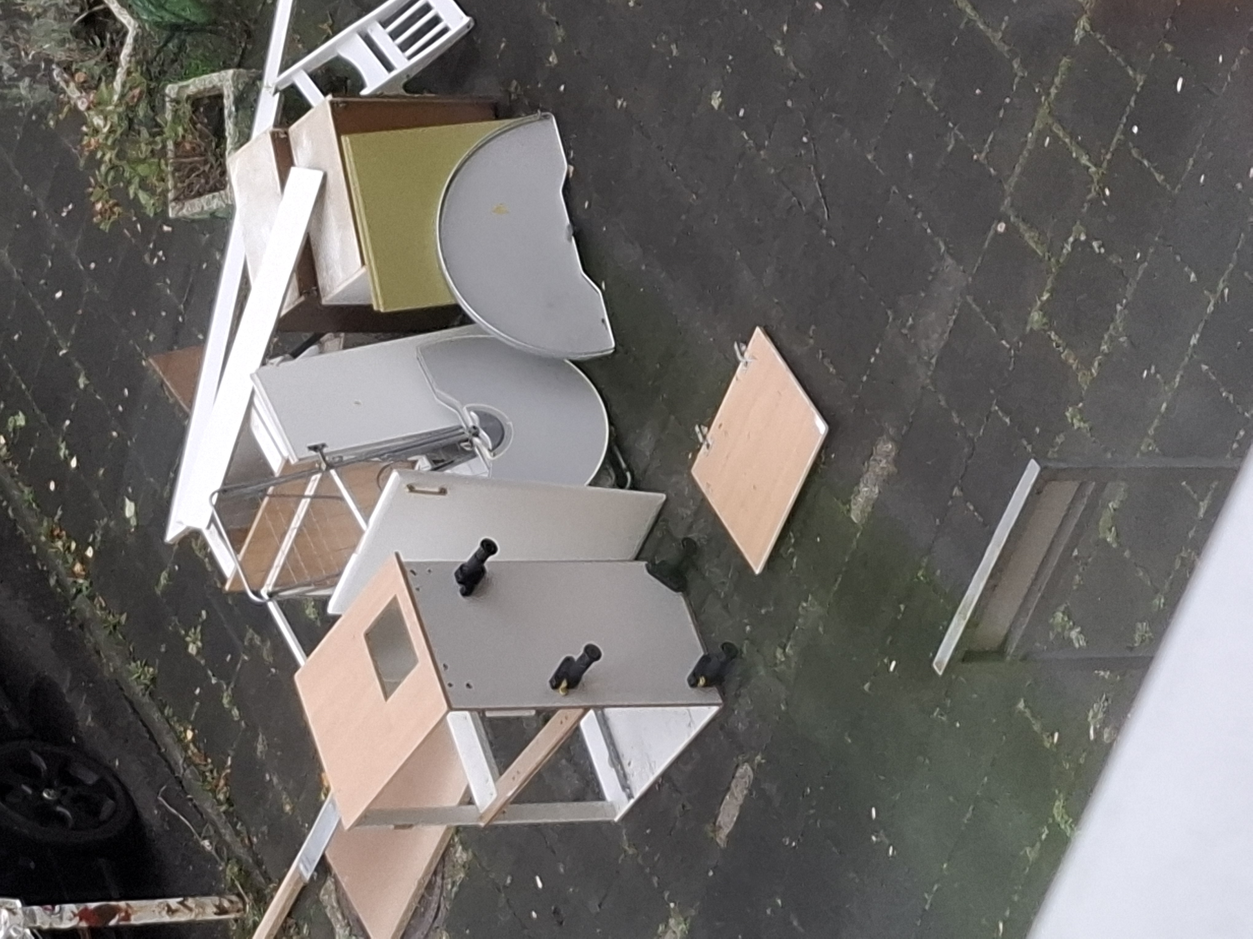 Sperrmüll blockiert Bürgersteig und den Weg zum Parkplatz