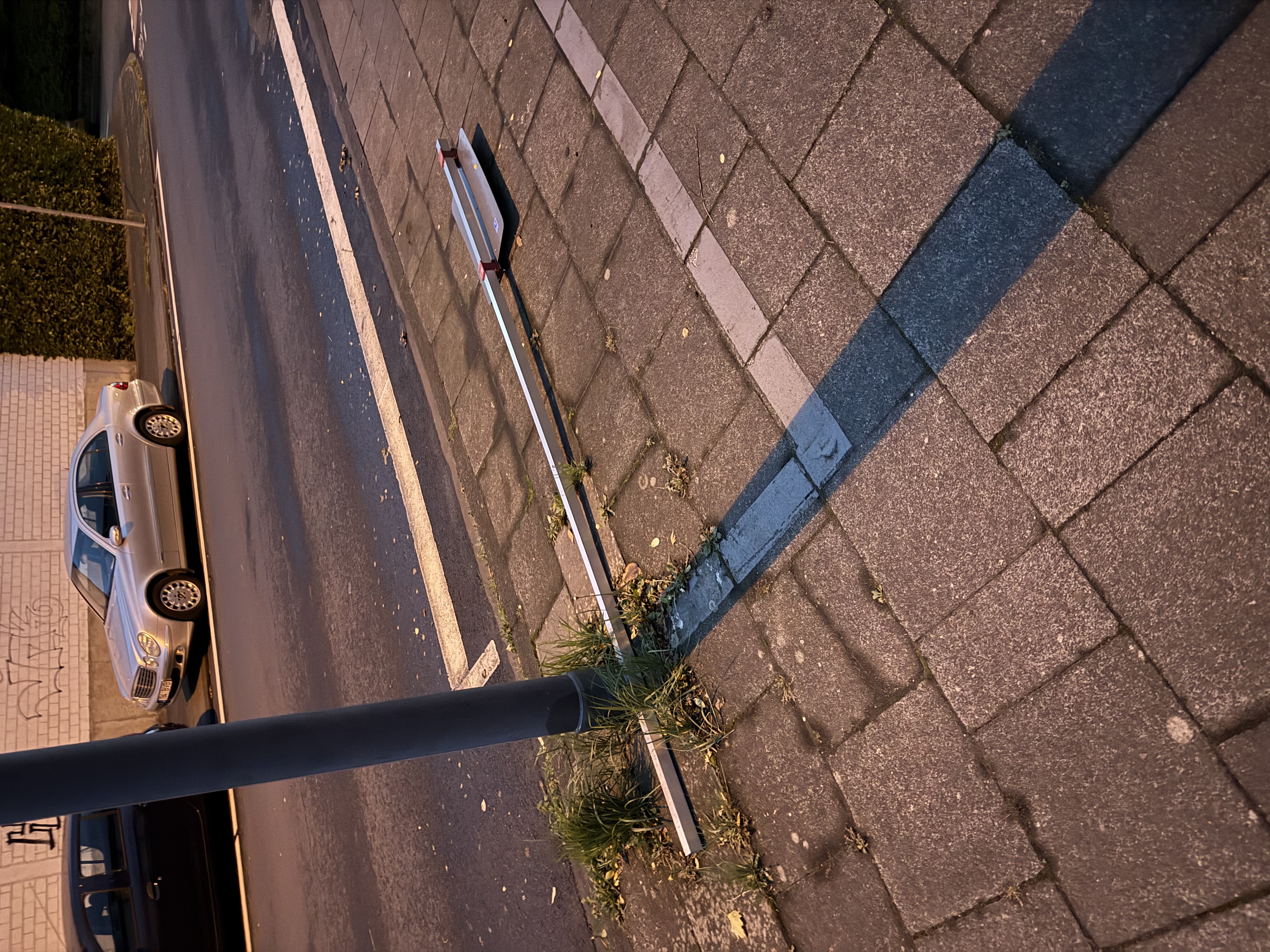 Umleitungsschild wurde von der Straßenlaterne abgebaut und auf den Parkplatz gelegt.