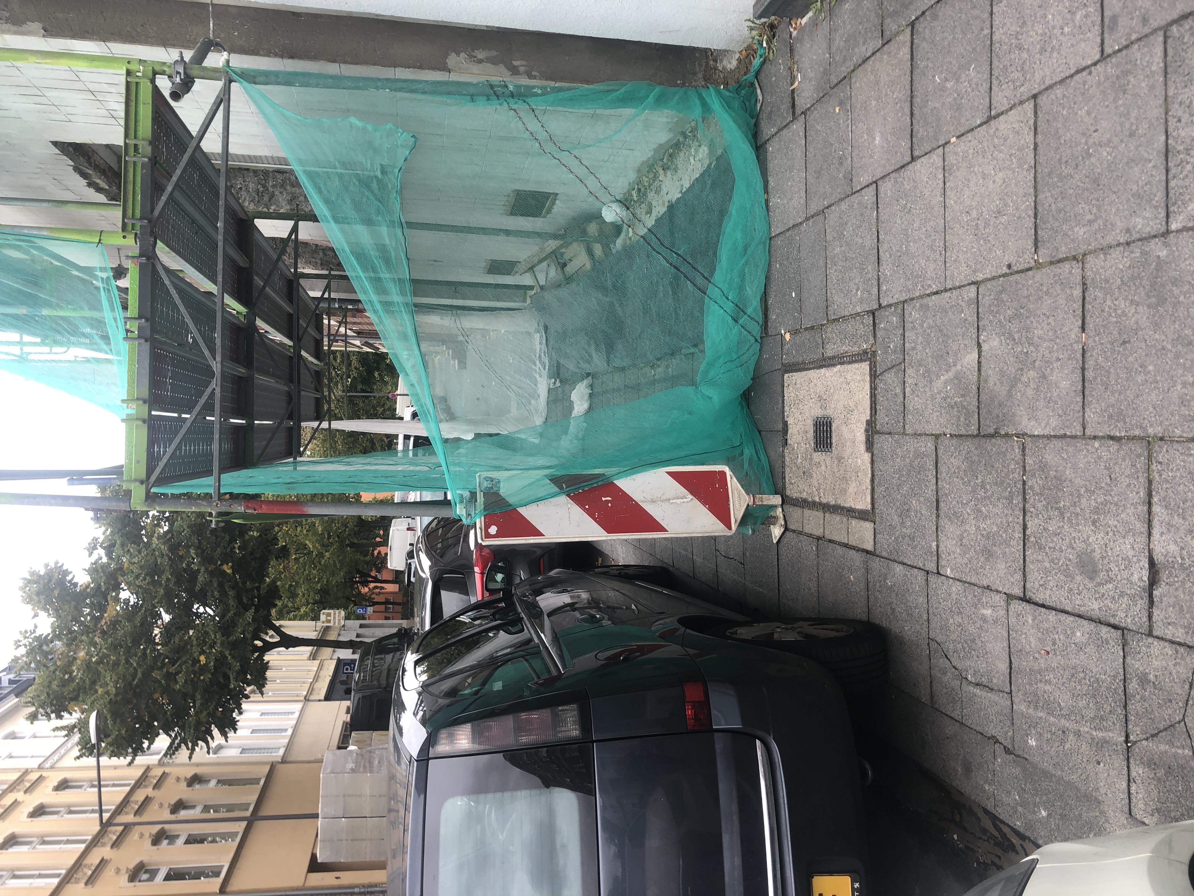 Gefahr durch Baugerüst auf dem Bürgersteig; Bitte um Fußgänger-Umgehung; Verhinderung von parkenden Autos