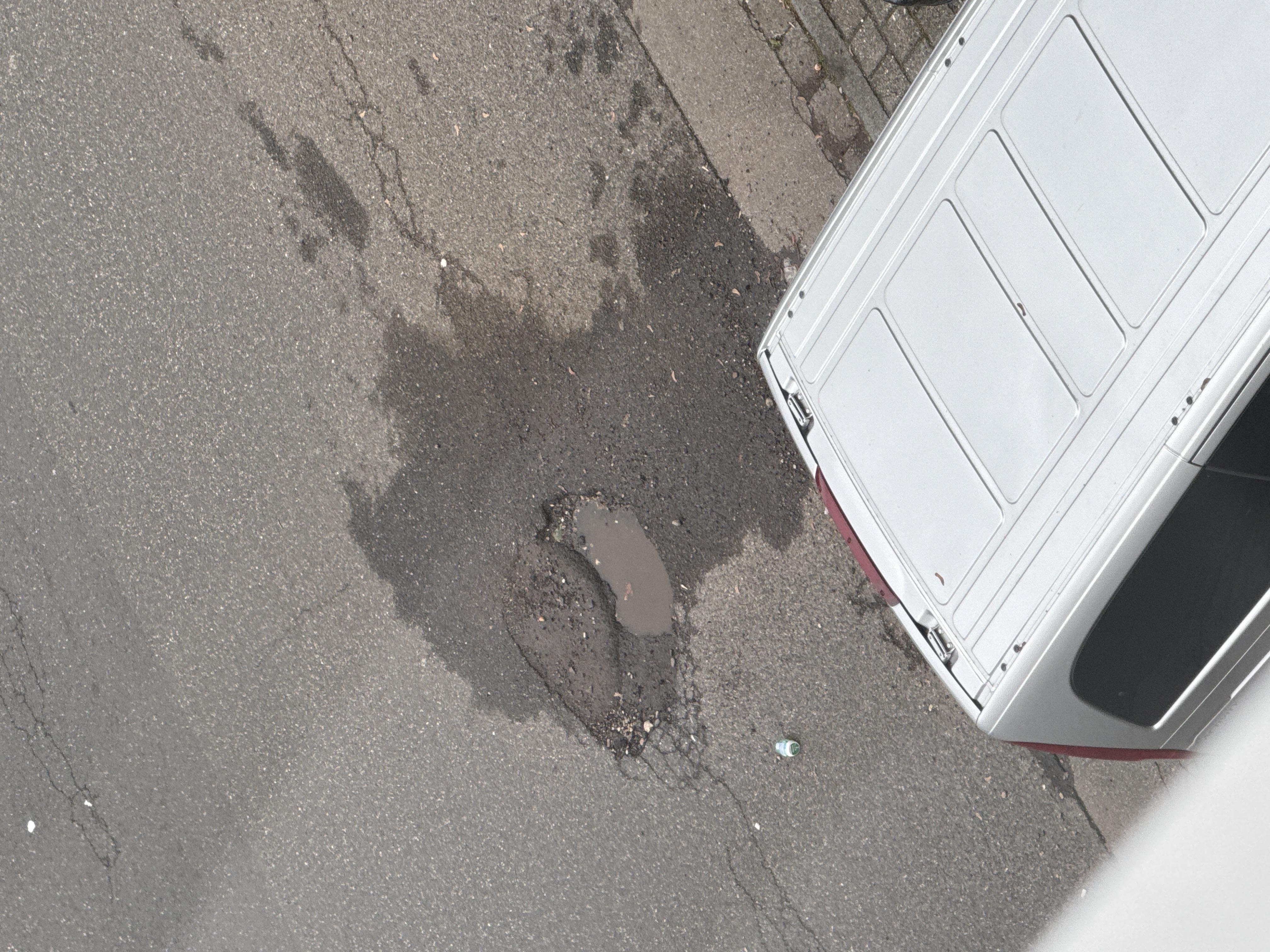 Seit Monaten steht dieses Straßenloch. Bitte um Instandsetzung.