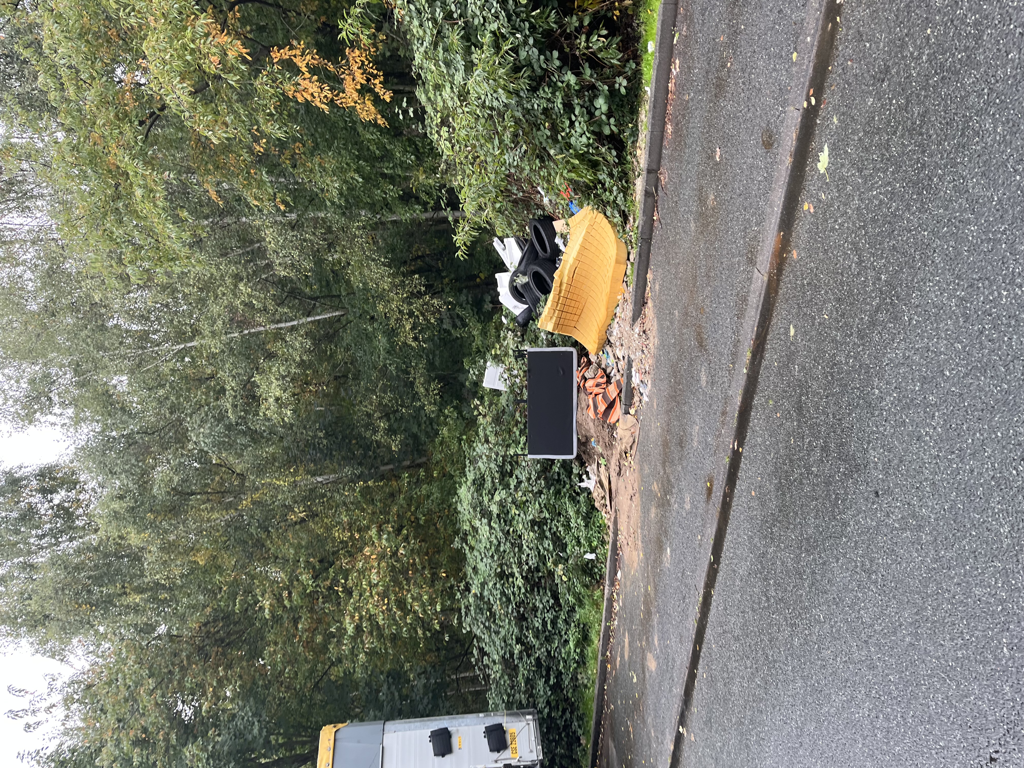 Auf der Straße sind gleich mehrere Müllablagen. Bauschutt, Matratzen, Reifen, Verpackungsmüll und mehr. Richtig viel leider.