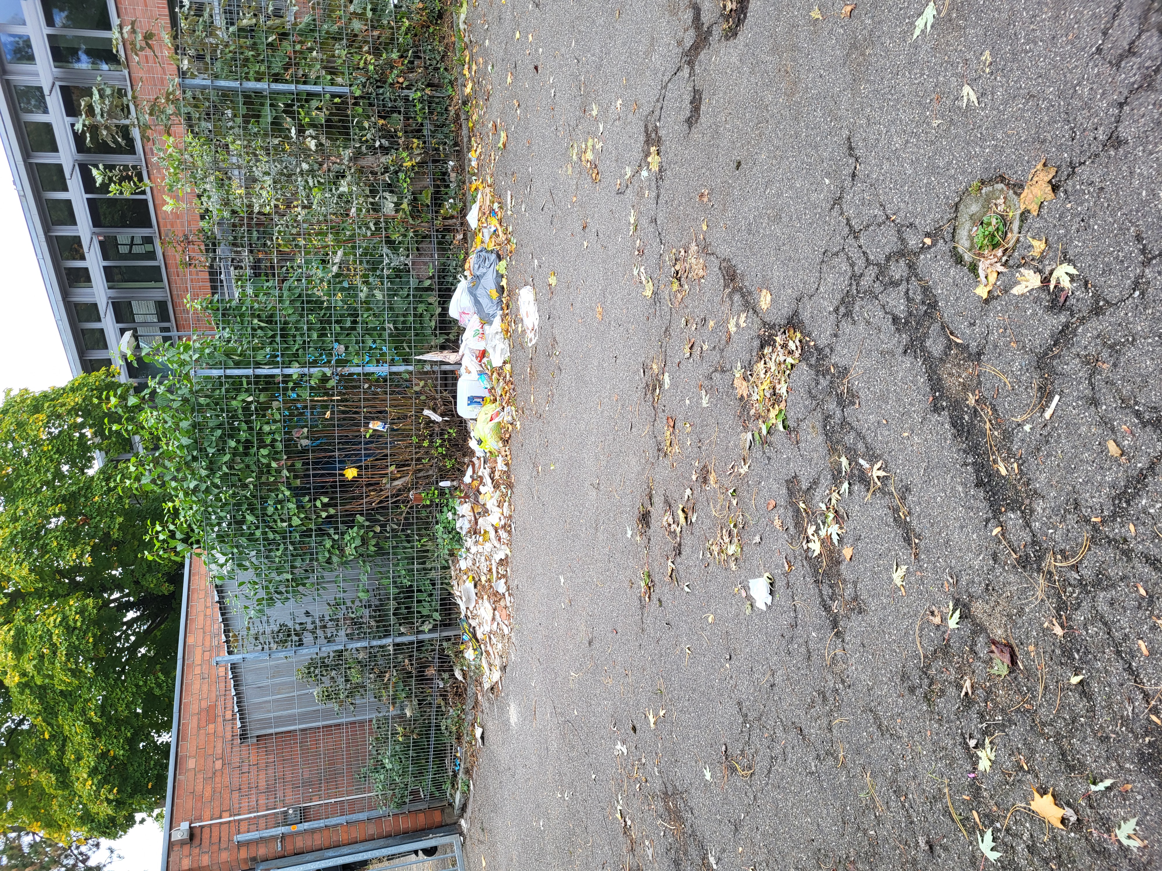 Baumschutt & Müll.... liegt seit Monaten in der Einfahrt zur Schule! Es wird immer mehr