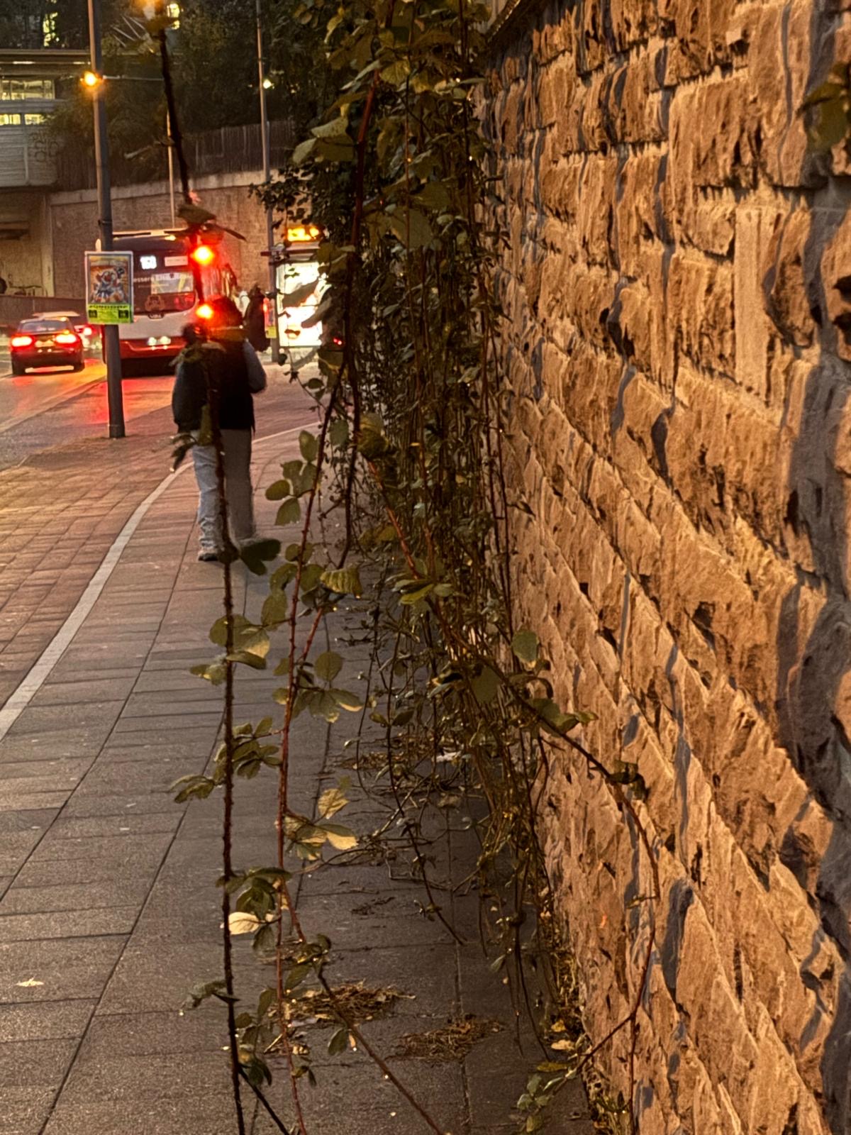 Brombeeren auf Gehweg, Fußgänger weichen auf Radweg aus!!