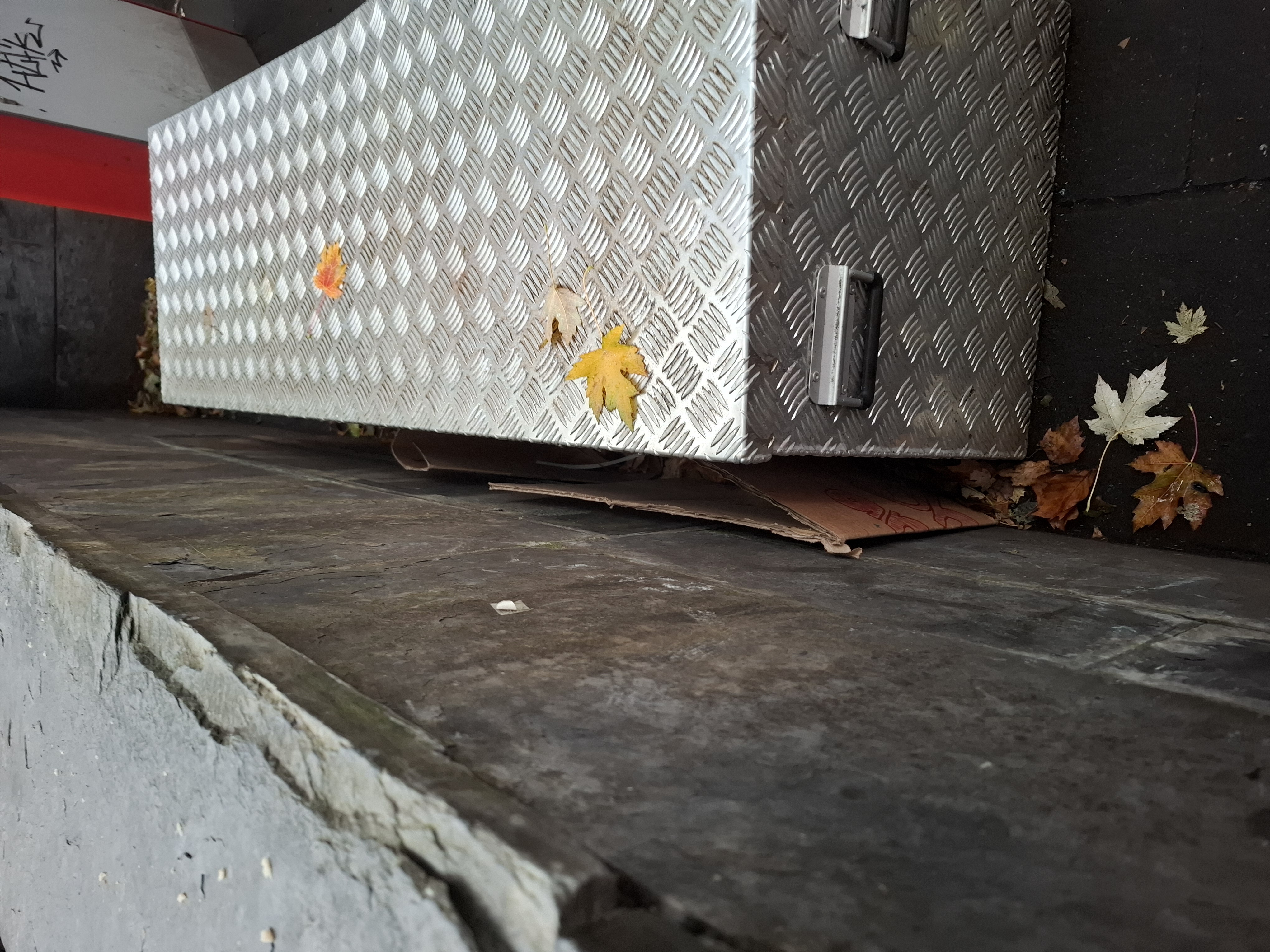 Stauraum der Straßenreinigung, dahinter sammelt sich leider immer wieder Müll an