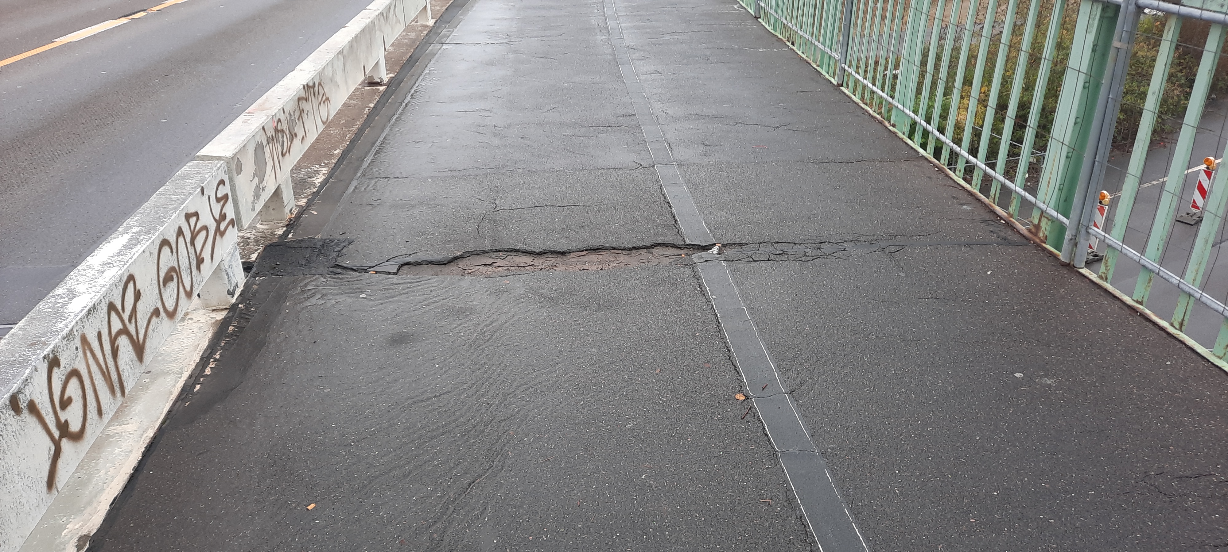 Das Schlagloch wurde bereits vor Monaten gemeldet. Der Verkehrssicherungspflicht bitte nachkommen.