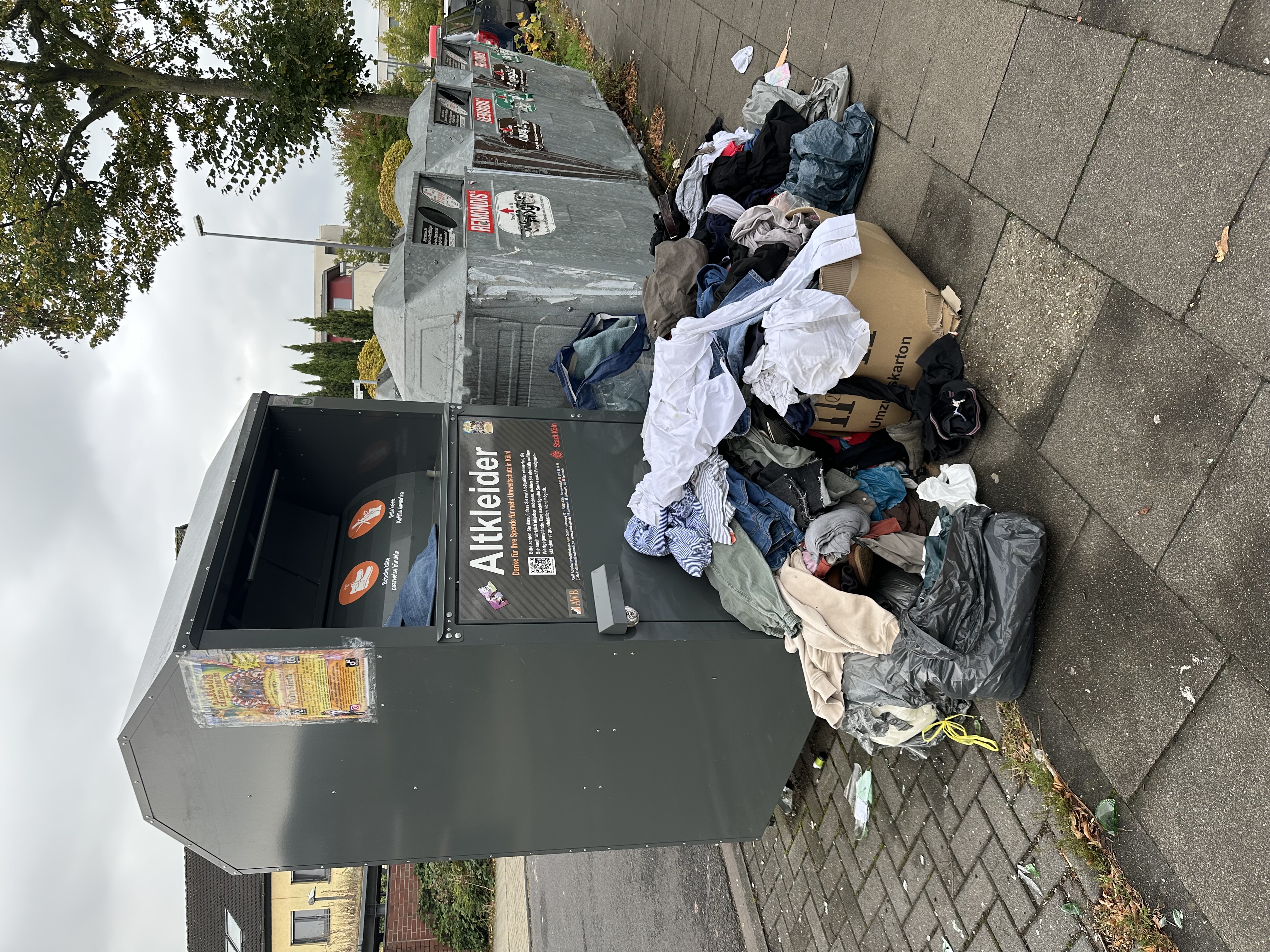 Es ist wirklich schlimm, Junge Menschen, die ich anspreche, warum sie immer noch etwas auf die vorm Kleidercontainer stehenden Tüten, stellen, antworten: