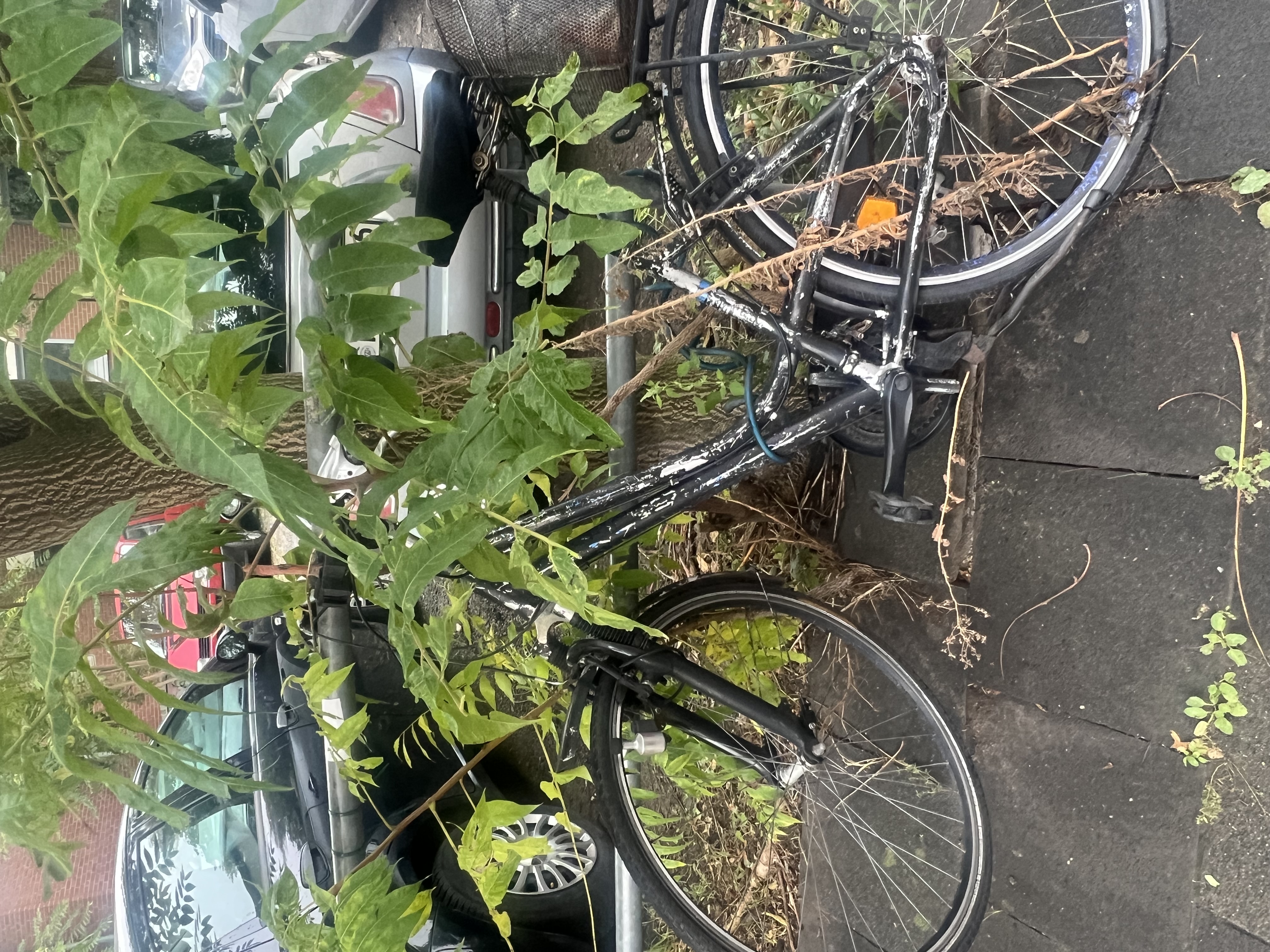 Das Rad ist komplett zugewachsen und schrottreif. 10 Meter weiter steht ein weiteres. Ich hatte das vor Wochen schon einmal gemeldet und die Standard-Nachrichte bekommen, es gäbe dort keine Schrotträder. Wieso geht man die Straße nicht einfach mal entlang bis zur Inneren Kanalstraße: da steht alle 10 Meter so ein Ding. Es ist eine Schande.