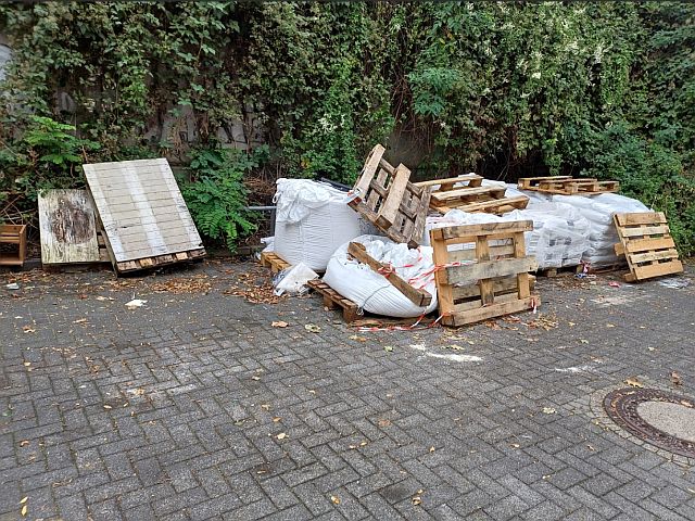 Köln-Mülheim, Münsterer Straße, Durchgang bzw. PKW-Parkplatz zum Böcking-Park zwischen den Häusern Nr. 49 und 37, 51063 Köln. Nachbarn erzählen, es sei eine genehmigte vorübergehende Lagerung von Bau- bzw. Renovierungsmaterial. Allerdings liegen die Sachen jetzt schon seit Wochen dort und wir haben nicht den Eindruck, als würde damit gearbeitet. Ich bitte um Prüfung des Sachverhalts, vielen Dank!