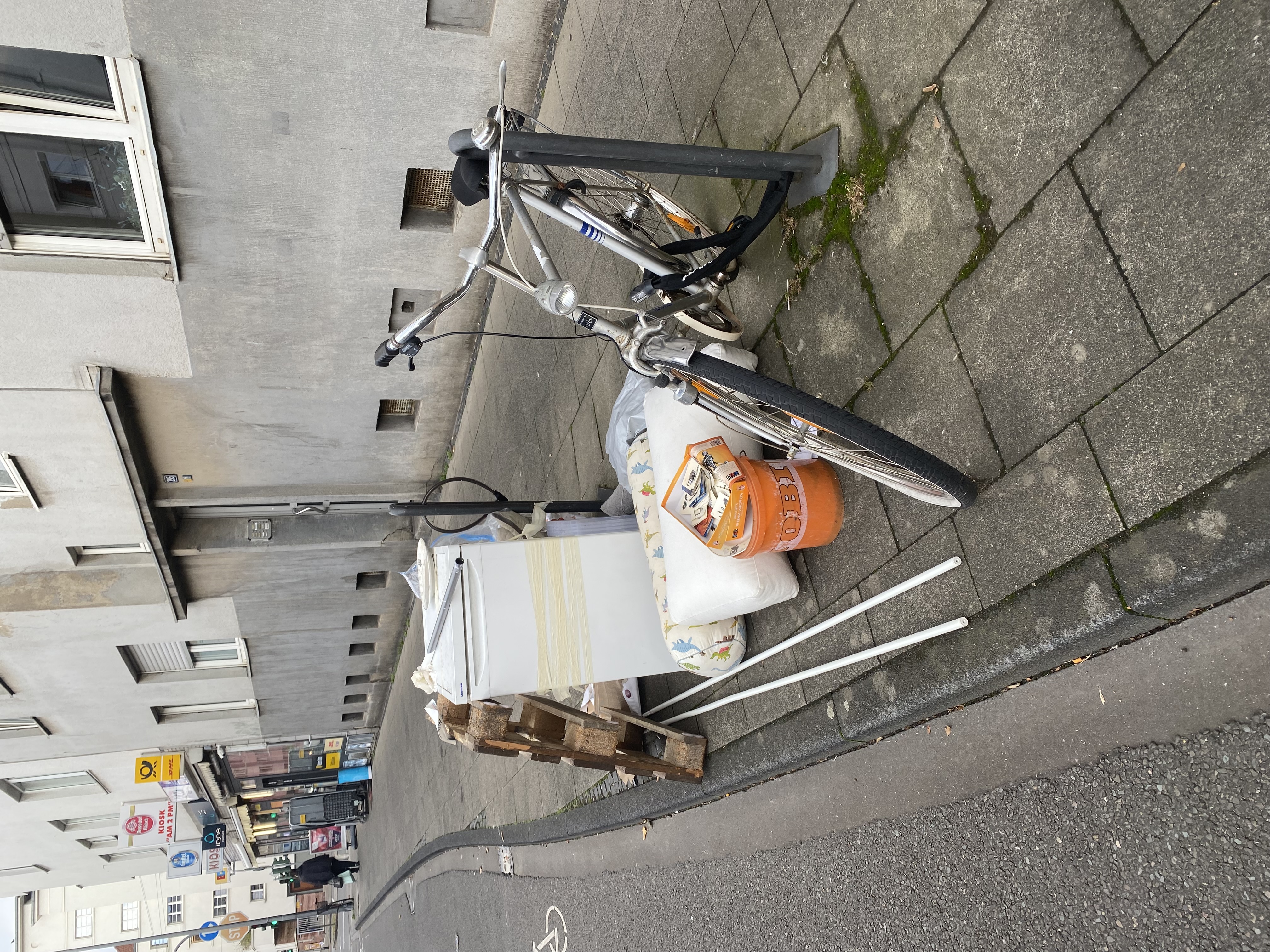 Zwei Schrottfahrräder dort an den Fahrradnadeln (nur eins im Bild, beide platte Reifen). In Bearbeitung Schrottfahrräder Höninger Weg 295 50969 Köln Deutschland Statusvermerke Das Anliegen wurde erstellt. Neu Do., 09.10.2025 - 23:52
