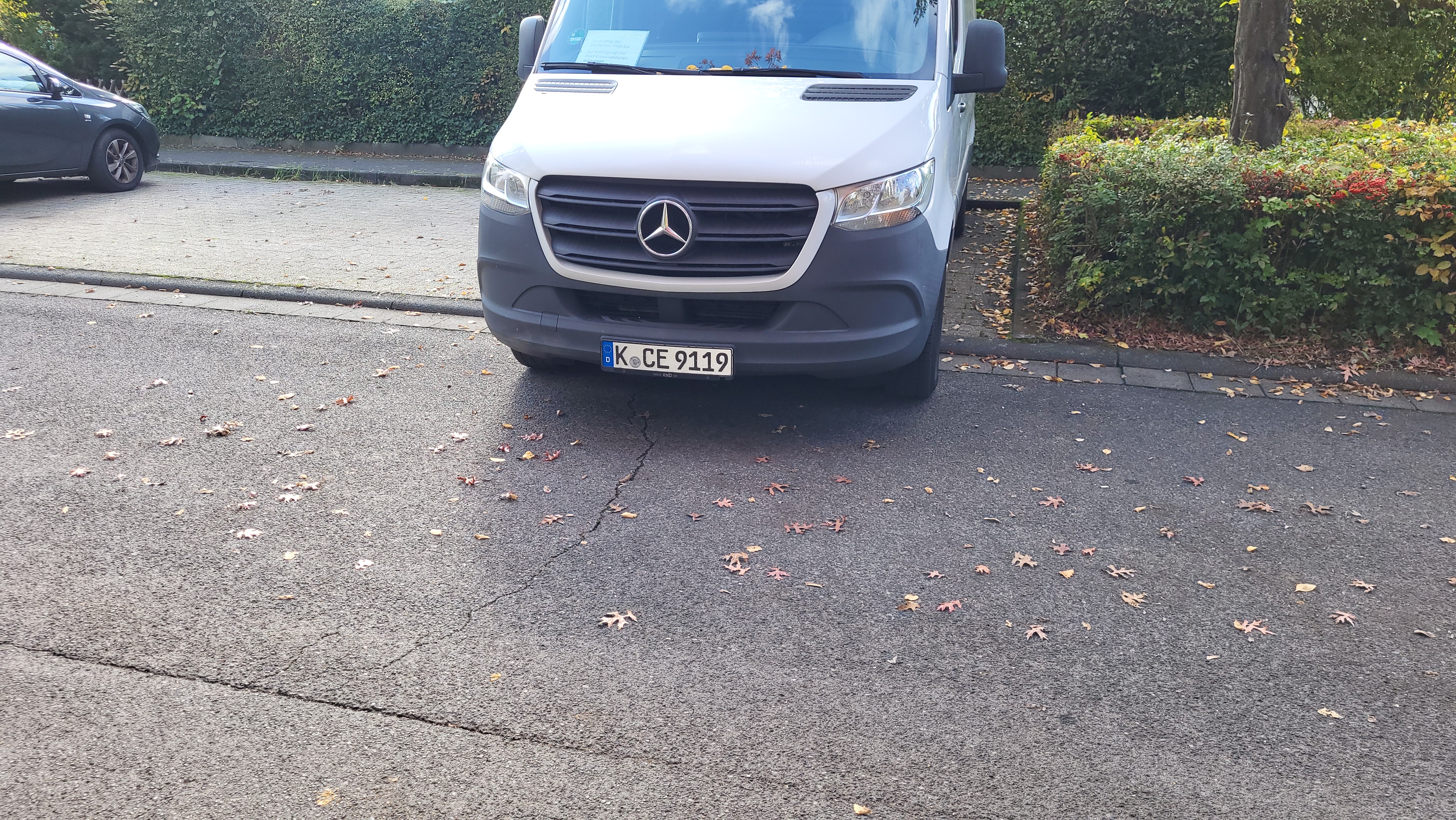 Der Lieferwaagen steht 1.5 m in der Straße