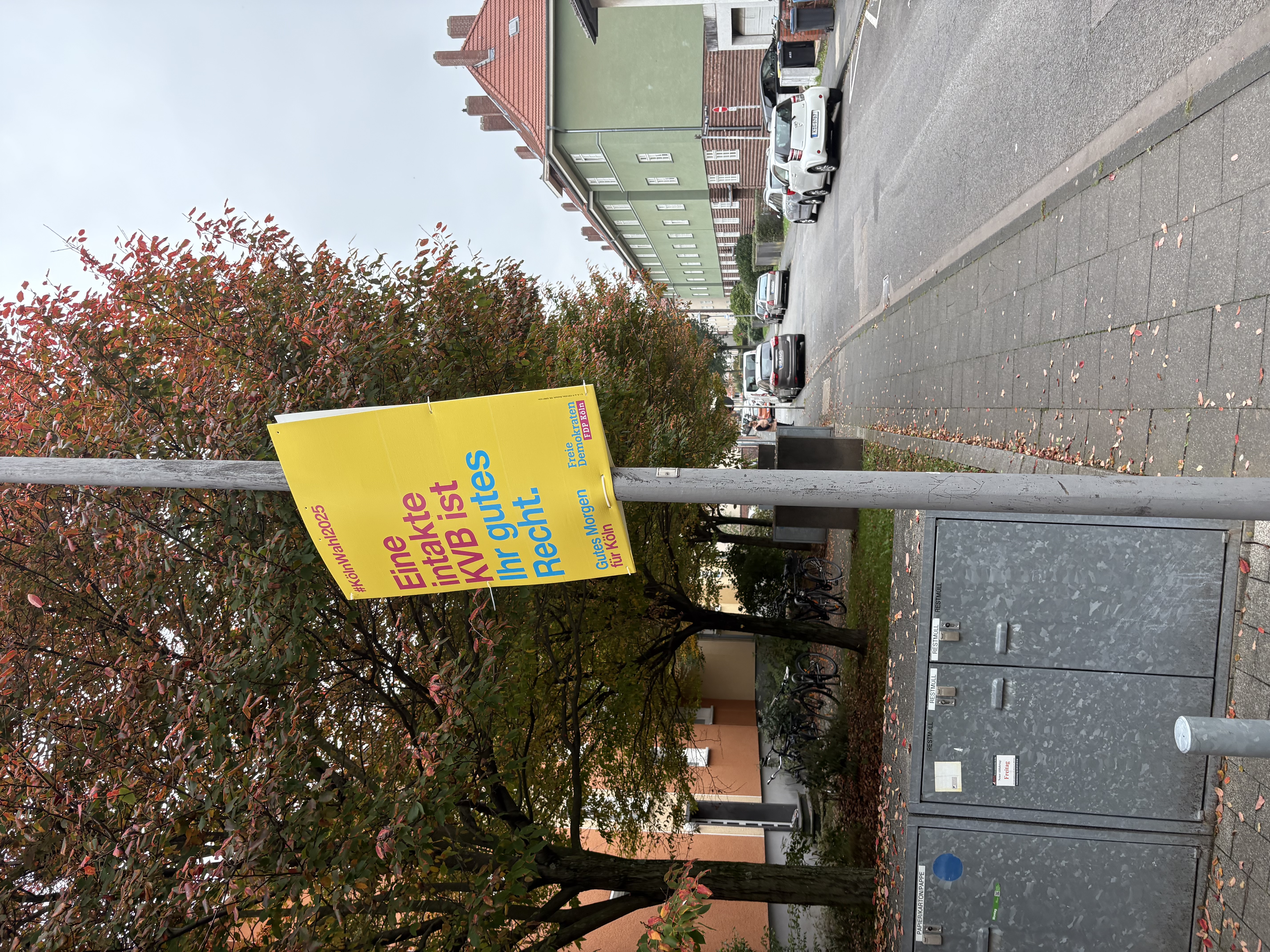 Vor dem Haus ist heute, 11.10.2025, 14:30 Ihr nach wie vor das auf dem Bild ersichtliche Wahlplakat angebracht. Neu Wilder Müll Koburger Str. 15 51103 Köln - Höhenberg Deutschland Statusvermerke Das Anliegen wurde erstellt. Neu Sa., 11.10.2025 - 14:53