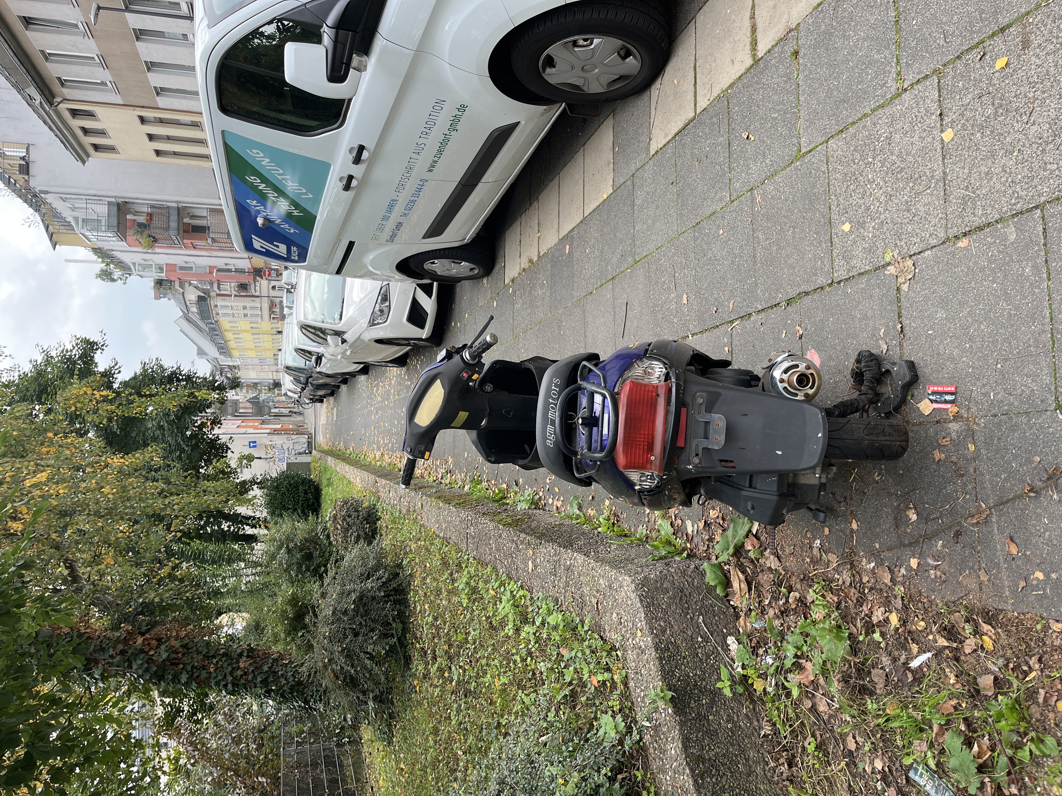 Schrott-Roller auf dem Gehweg