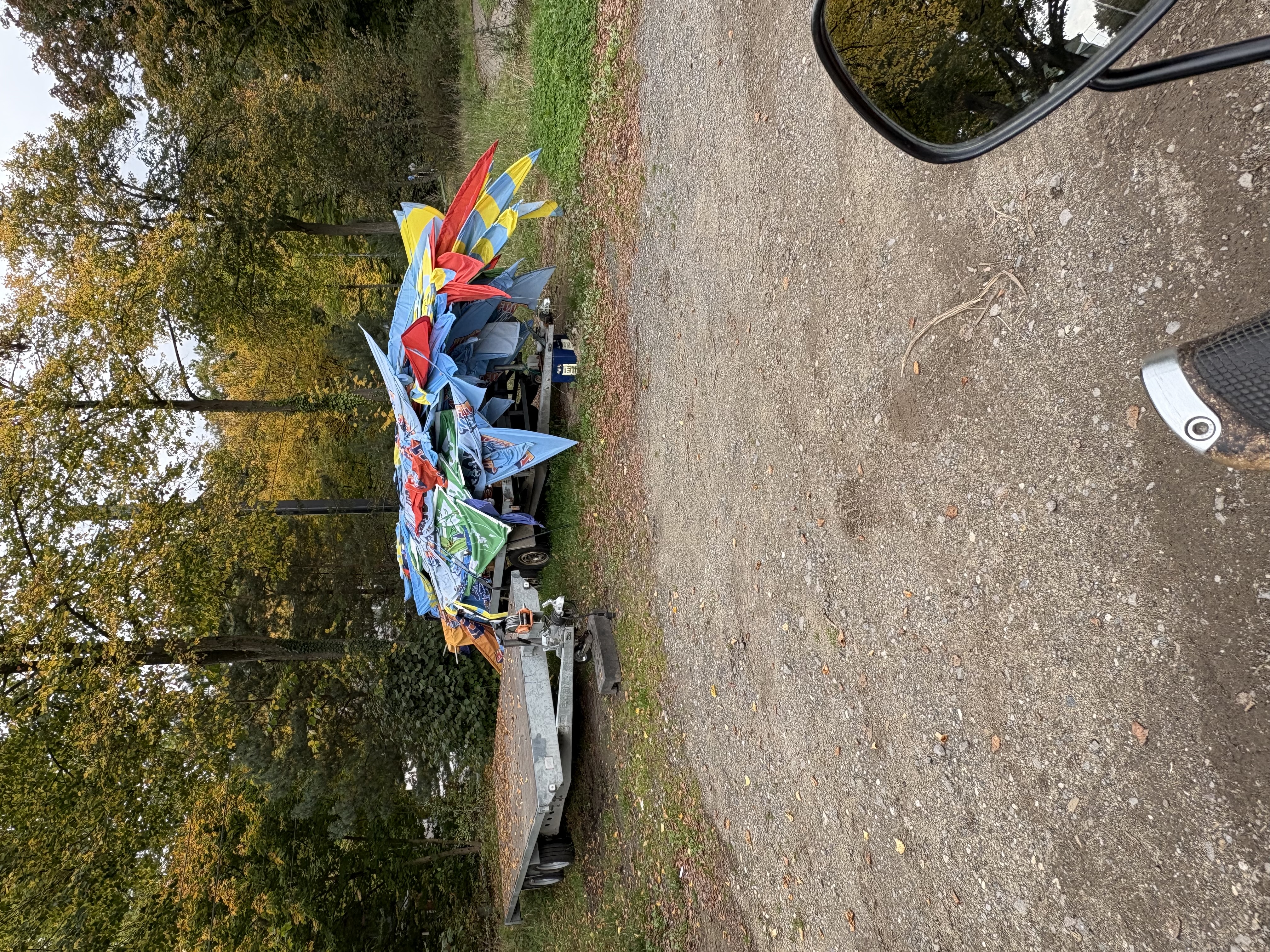 Auf dem großen Parkplatz, hinten links ist seit Tagen dieser Anhänger abgestellt (und 2 weitere, leere). Ich bitte um Überprüfung. LG, Brigitte Fest