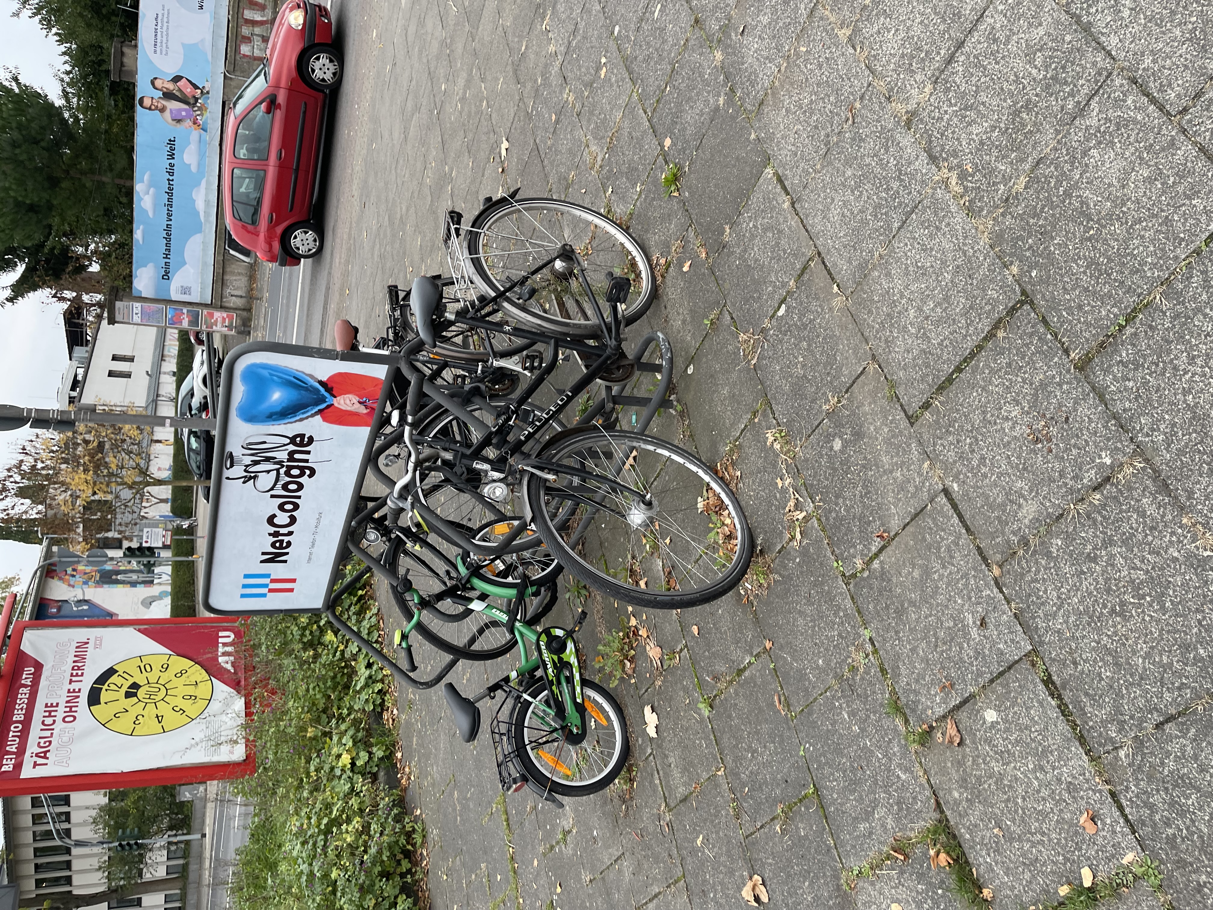 verrostetes und plattes Rad. Grünzeugs wächst bereits durch die Speichen.