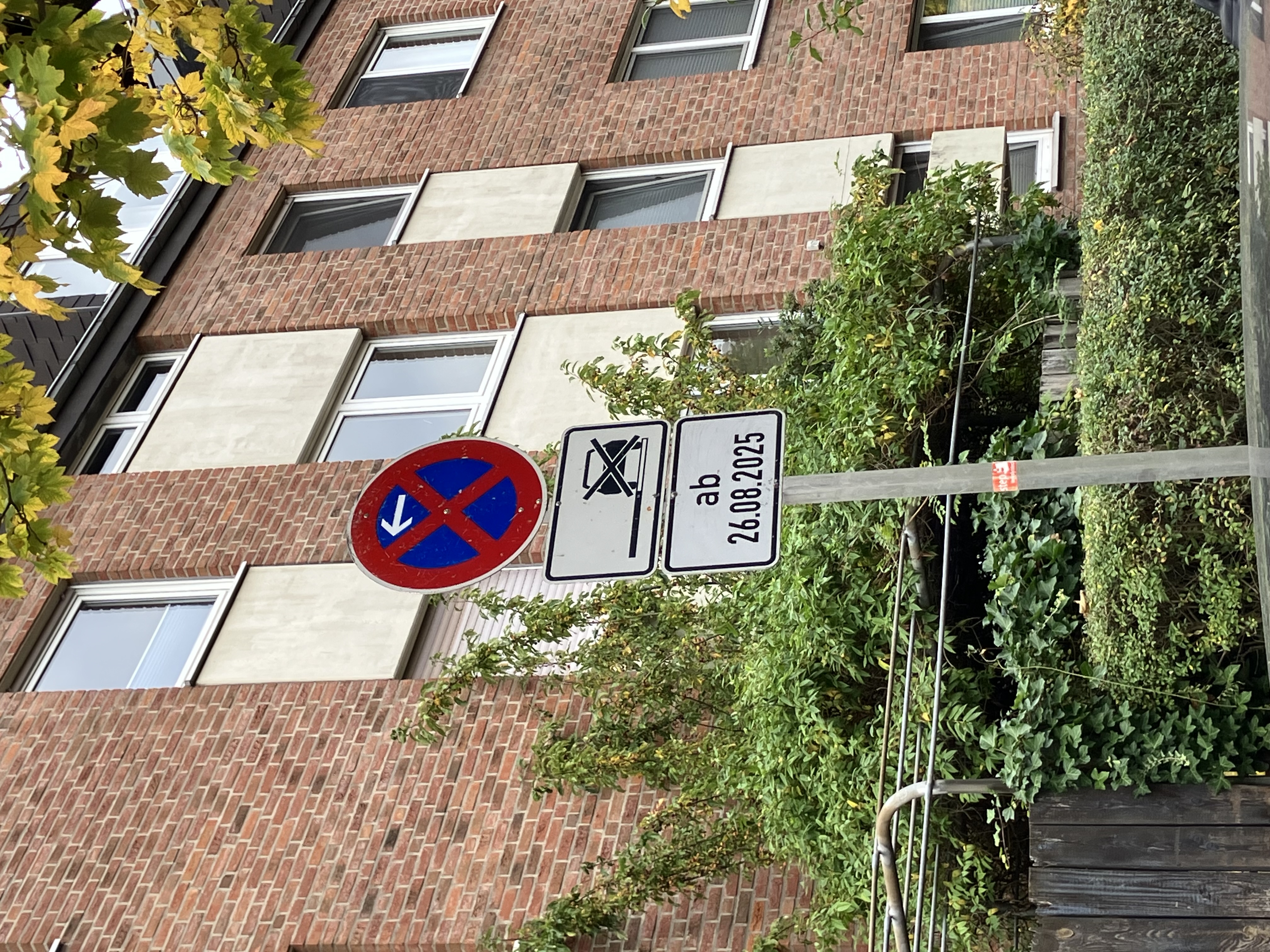 Vor Ernst-Wilhelm-Nay-Str.9, 50935 Köln sind seit dem 26.8.25 2 Parkverbotsschilder aufgestellt. Es gab hier keine Baustelle. Schilder wurden bis heute nicht abgeholt. Mit der Bitte um Erledigung. Vielen Dank.