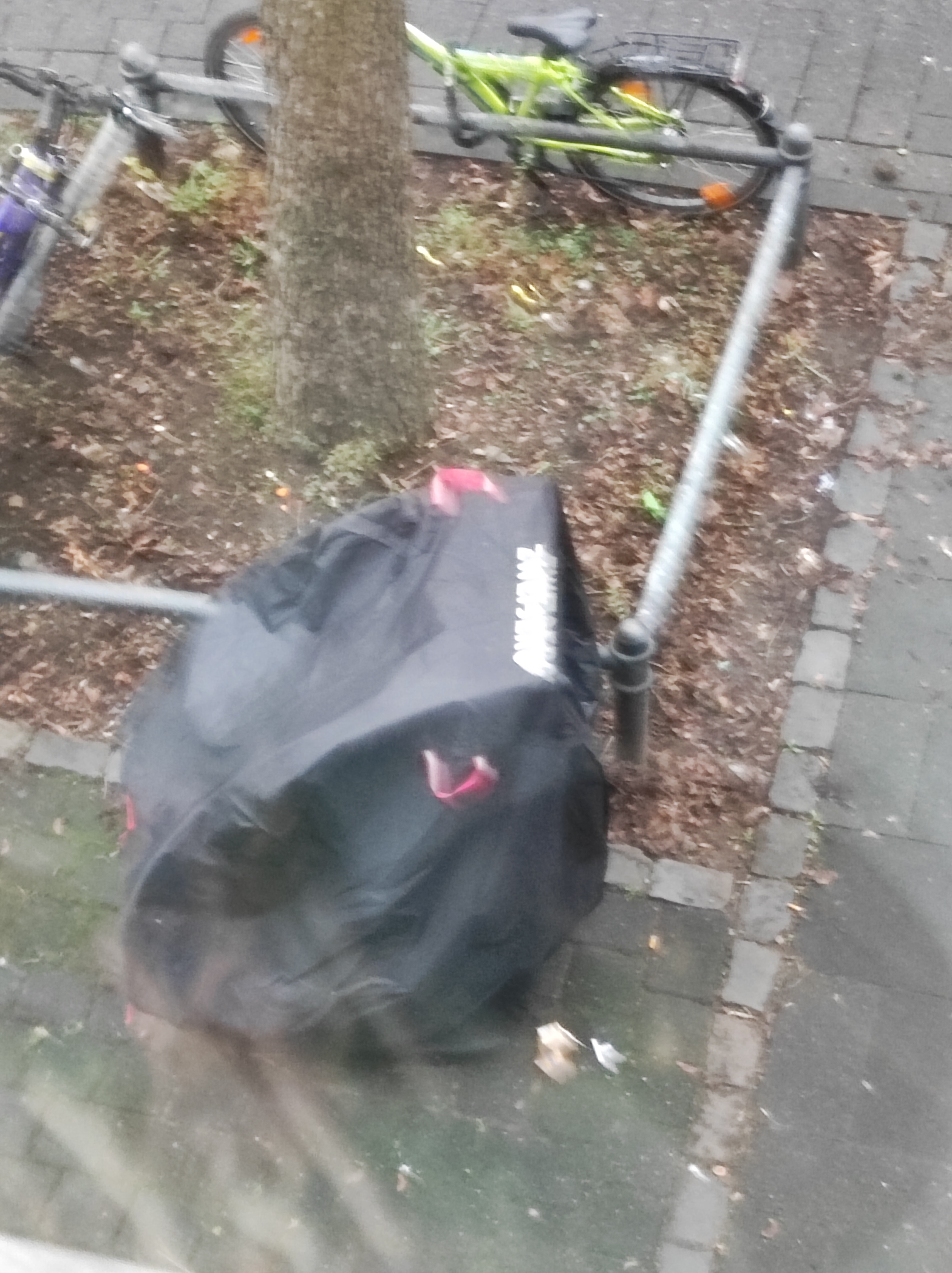 Anhänger von Nachbarn aus taunusstraße. Steht seit 1 Jahr unbenutzt da. Wird nur geparkt bzw. gelagert.Kinder sind wohl rausgewachsen. Nachts bei Wind peitscht die Plane. Hunde urinieren dran rum. Entweder sollen sie es entfernen oder bei sich im / am Haus lagern., nicht vor fremden Häuser.