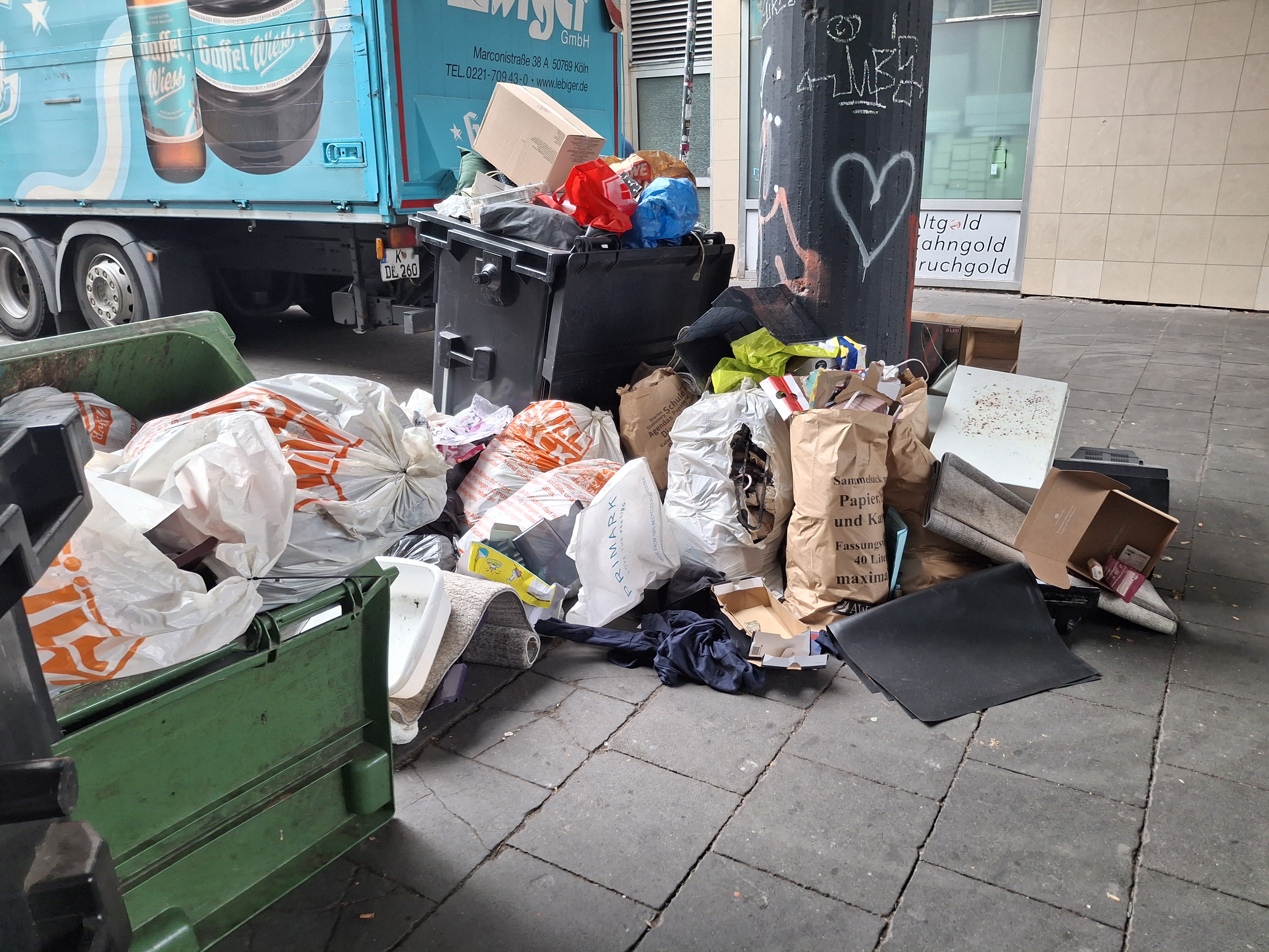 Unglaublich viel Müll wurde neben den Containern hingeschmissen!!! Schon seit 2 Tagen!