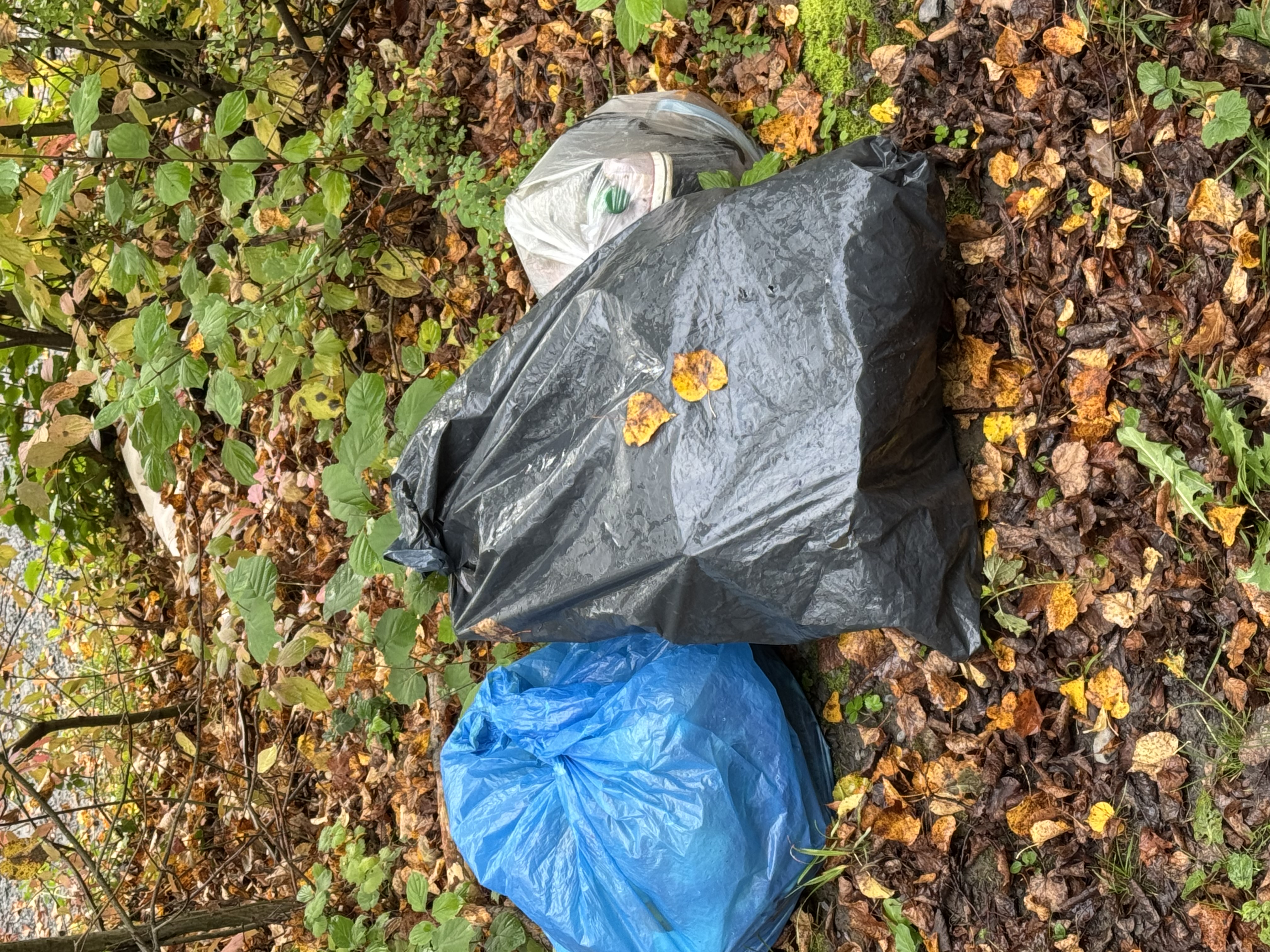 Parkplatz Leidenhausen. 2. Einfahrt links am Ende rechts. Wir haben unsere gesammelten Müllsäcke und Lachgasbehälter zum Erkennen hingestellt. Hinter den Säcken liegt ein TEPPICH , den ich bereits 2x gemeldet habe.