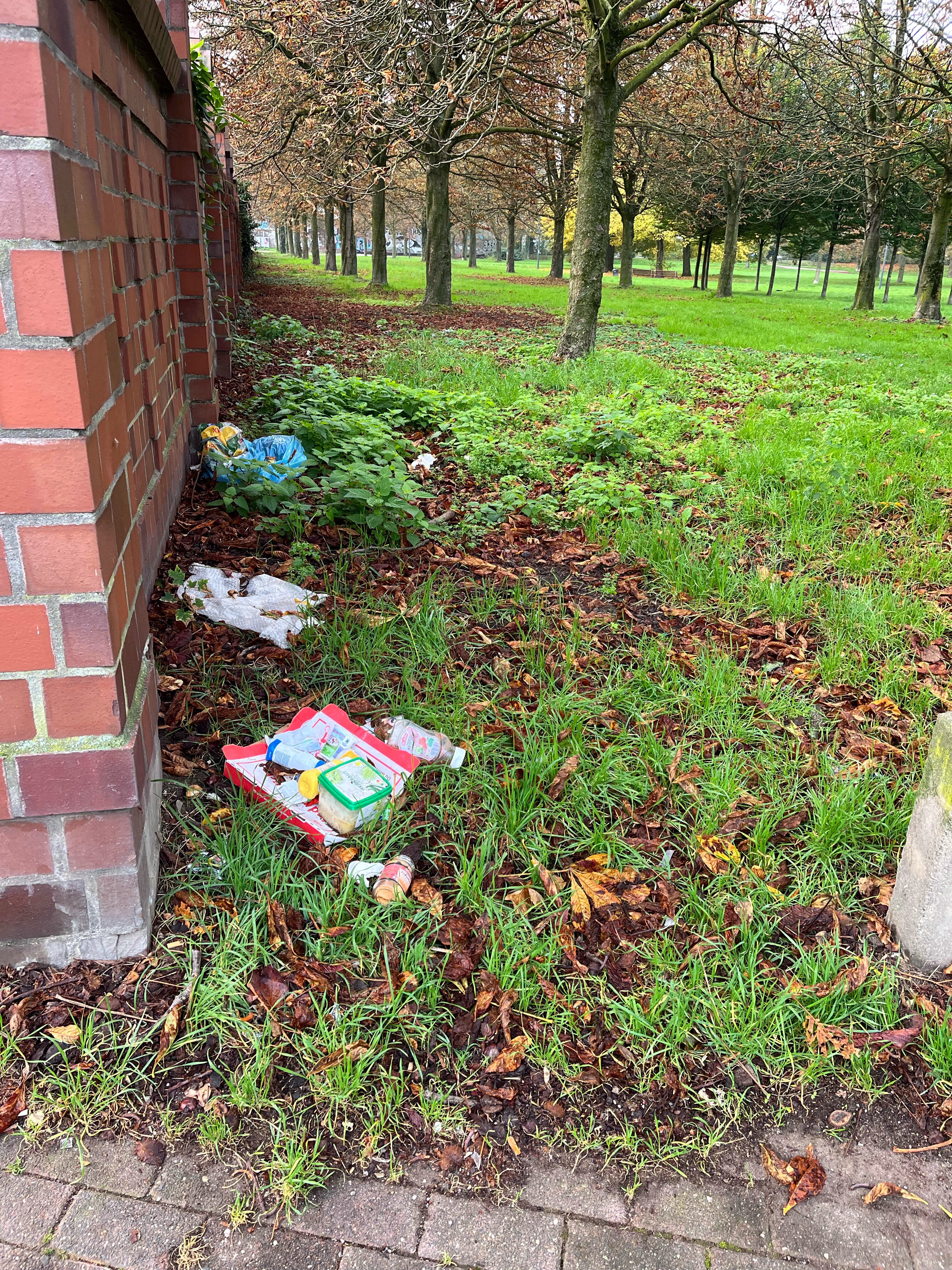 Müll wurde an der Mauer im Böckingpark entsorgt.