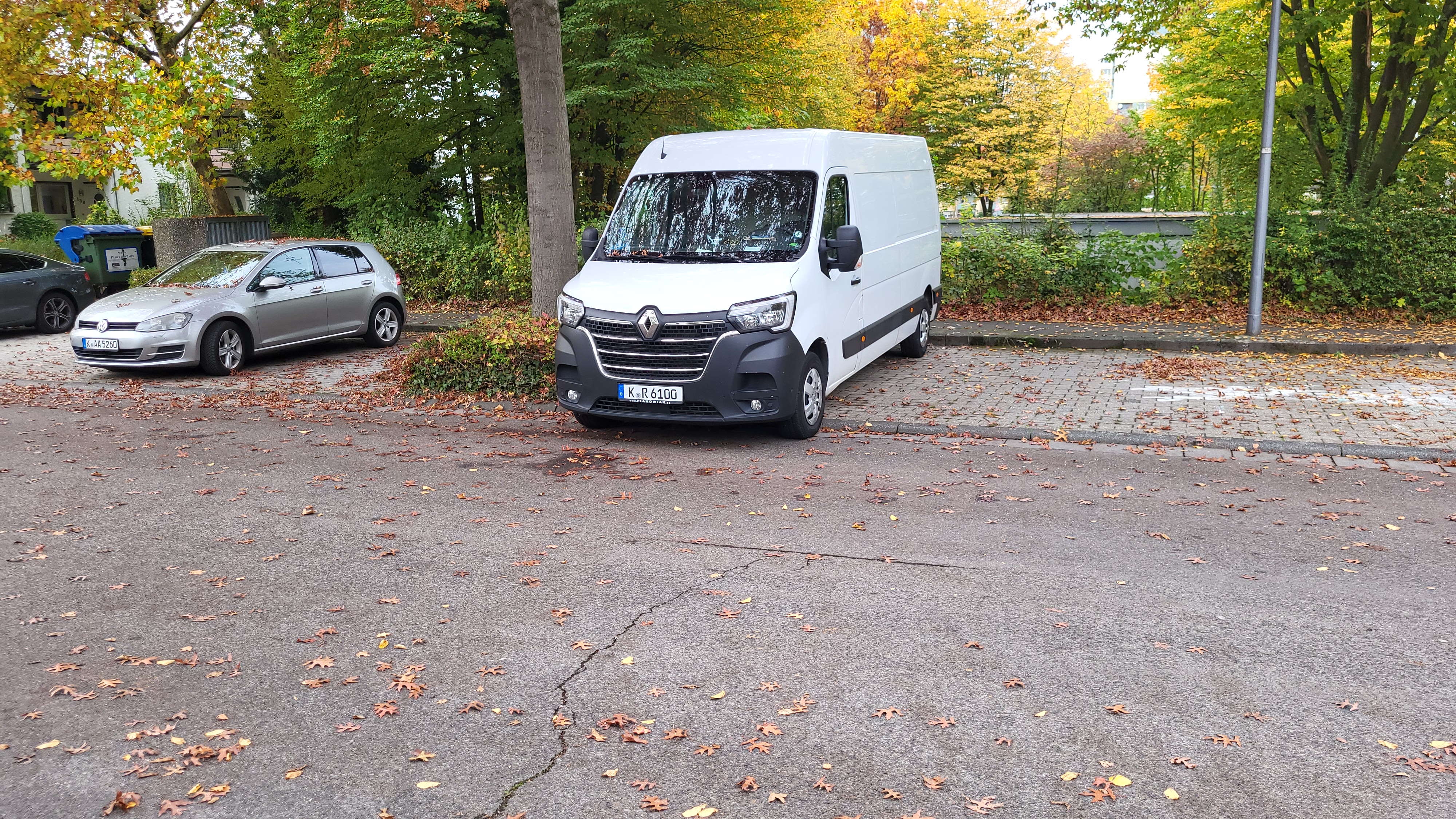 Wie auf dem Foto zu erkennen ist, ein Lieferwagen der etwas über 1 m in die Straße ragt.