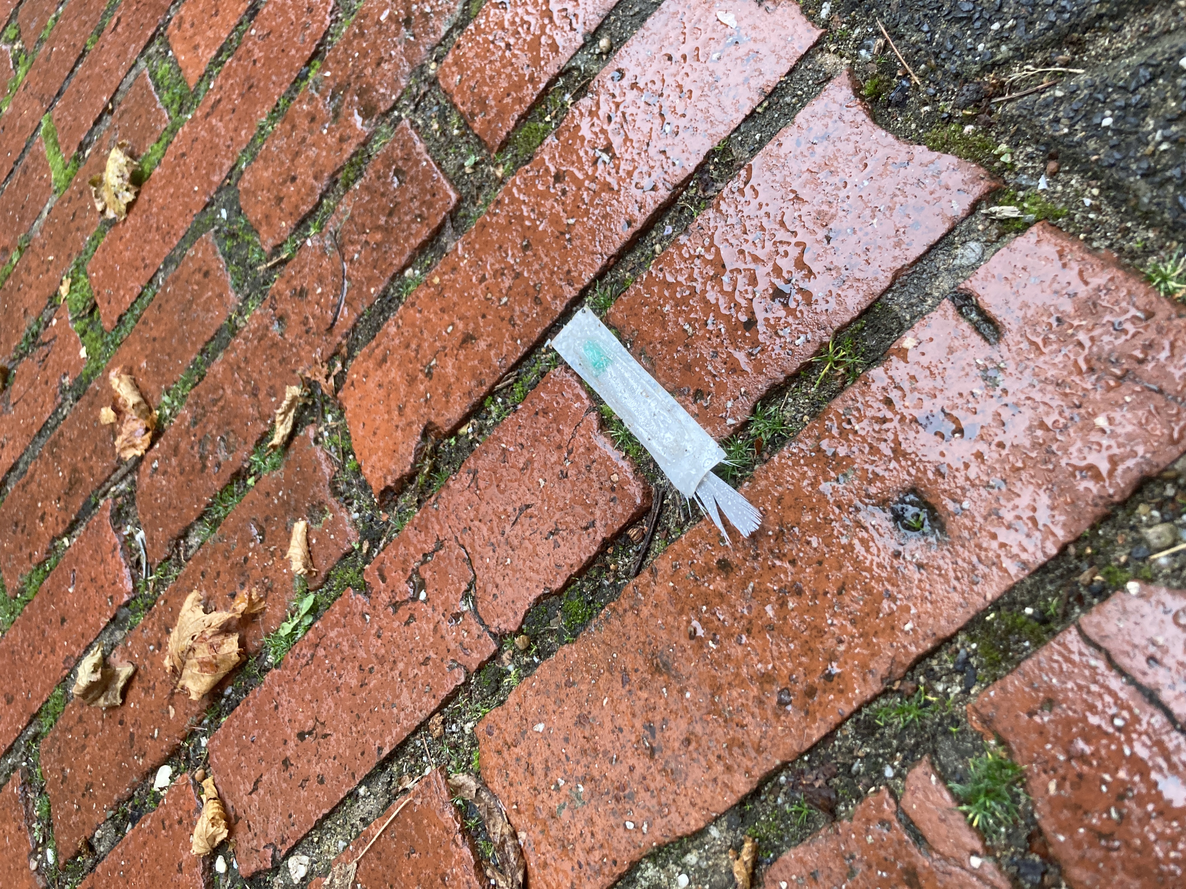 Pfarrheim St. Katharina in Köln Alt Niehl: erneut liegen Spritzen und Nadeln vor dem Pfarrheim. Vermutlich von Drogenkonsum. Das gebrauchte Besteck stellt für alle eine Gefahr dar, vor allem für spielende Kinder.