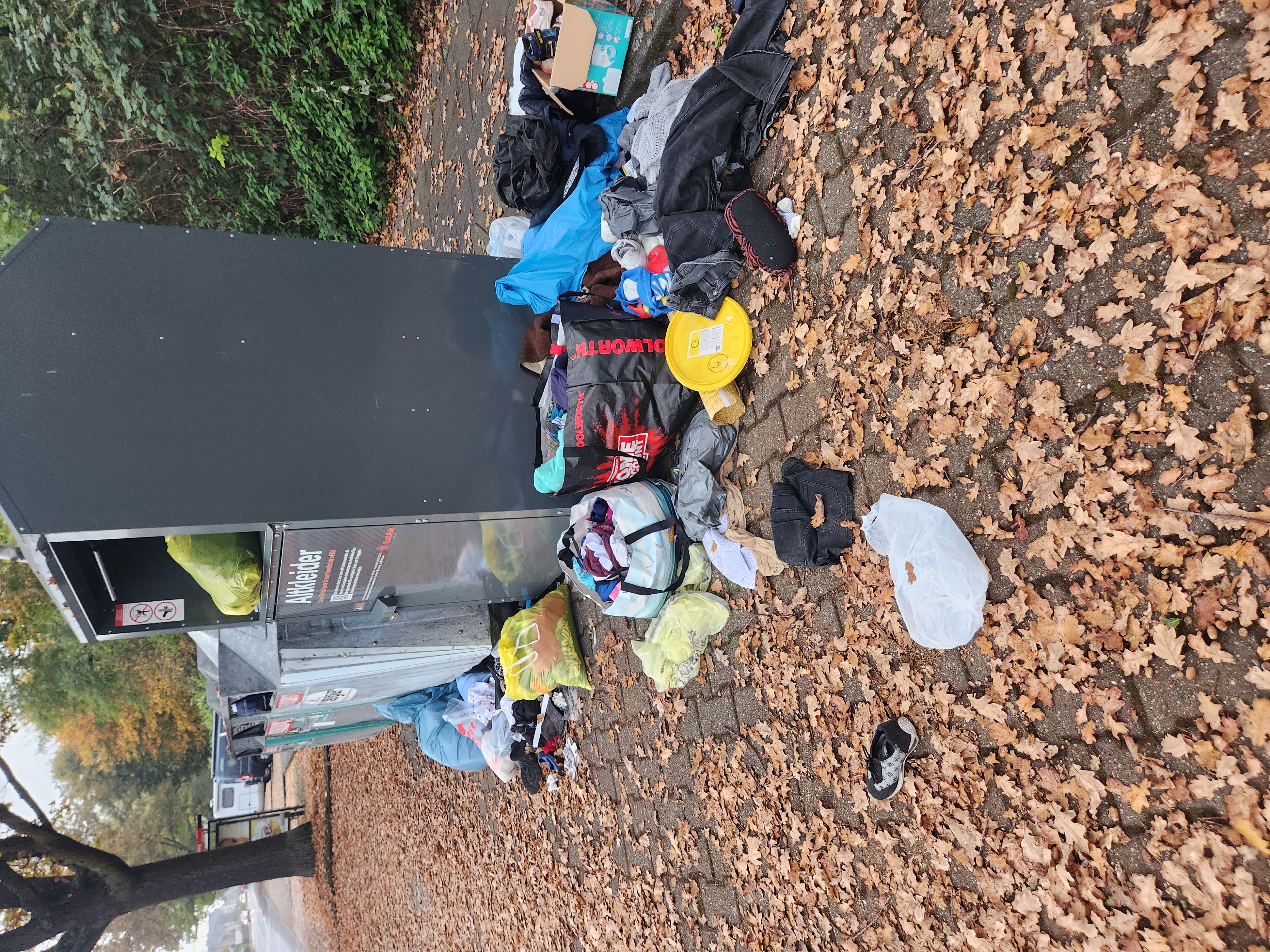 Um die Altglascontainer/ Altkleidercontainer liegen grössere Mengen Altkleider verteilt. Neu Wilder Müll Goldregenweg 5 51061 Köln Deutschland Statusvermerke Das Anliegen wurde erstellt. Neu Sa., 18.10.2025 - 05:54