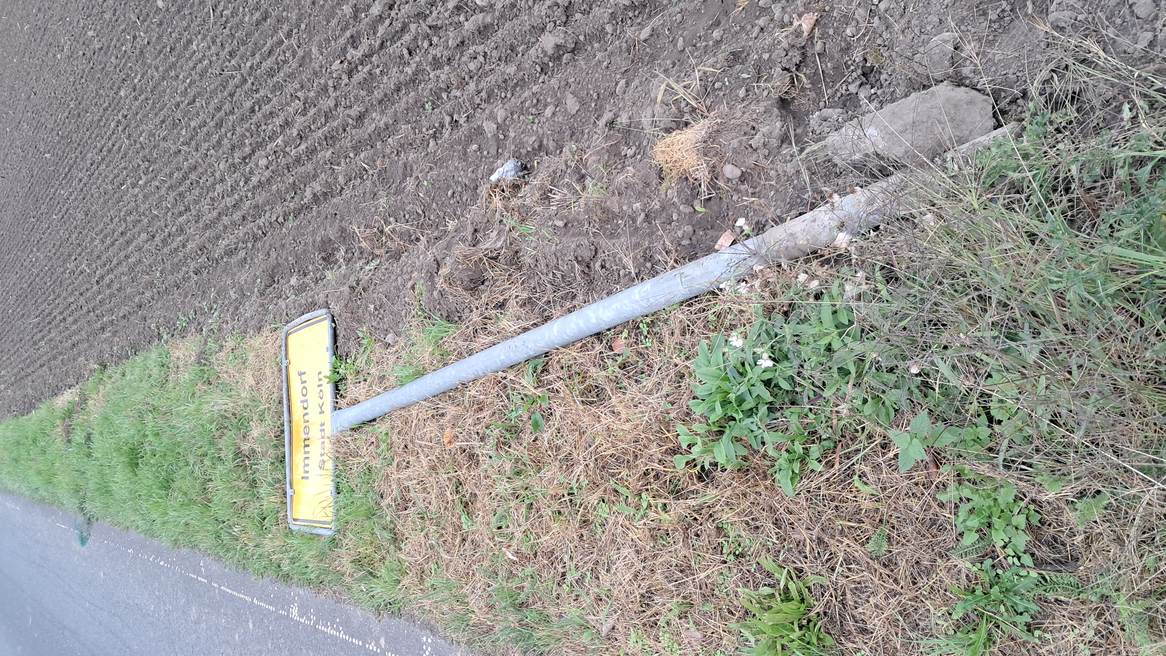 Ortsschild Immendorf aus Richtung Meschenich wurde umgepflügt.