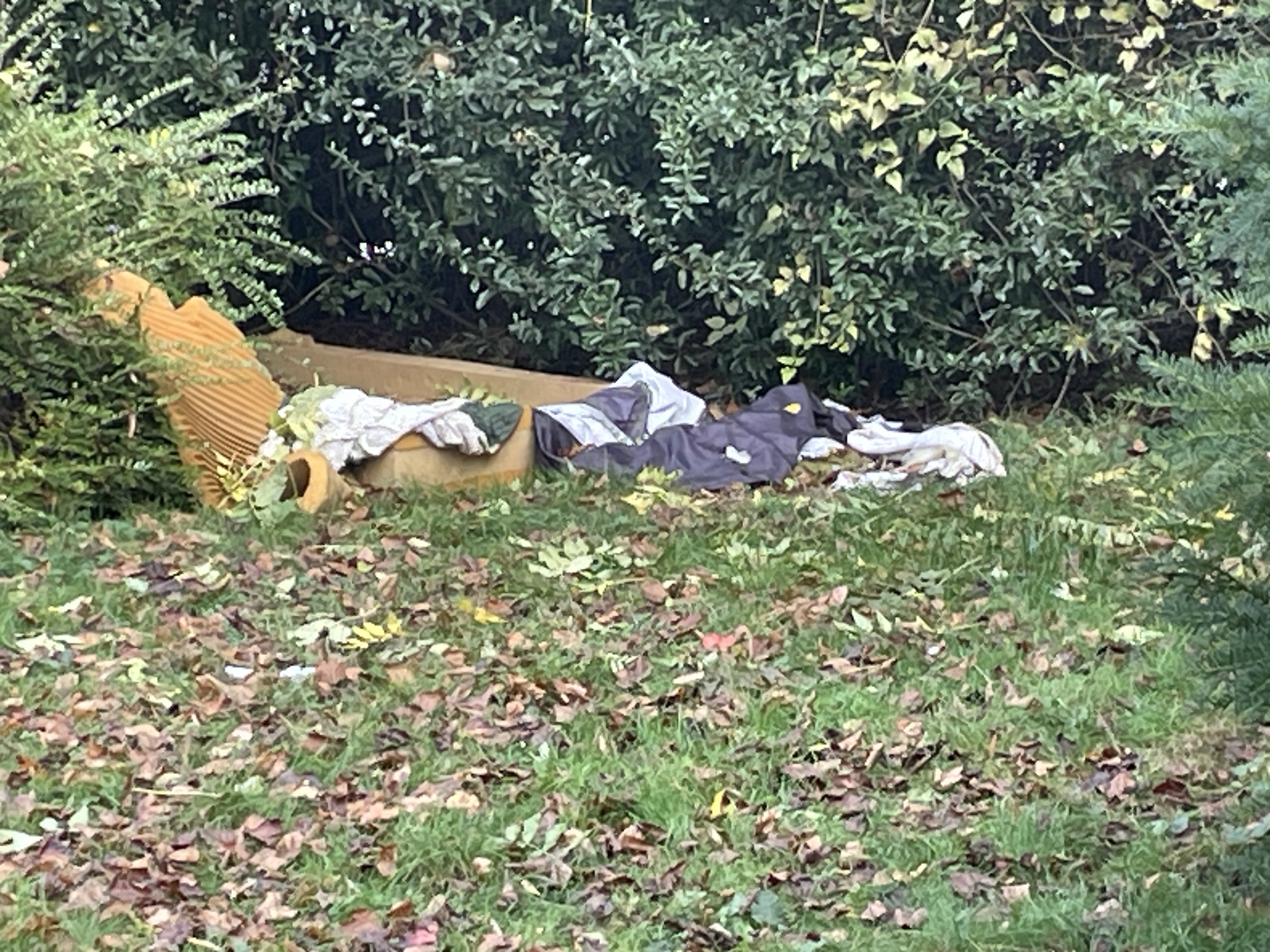 Wilder Müll gegenüber vom Haupteingang, alte Oberfinanzdirektion