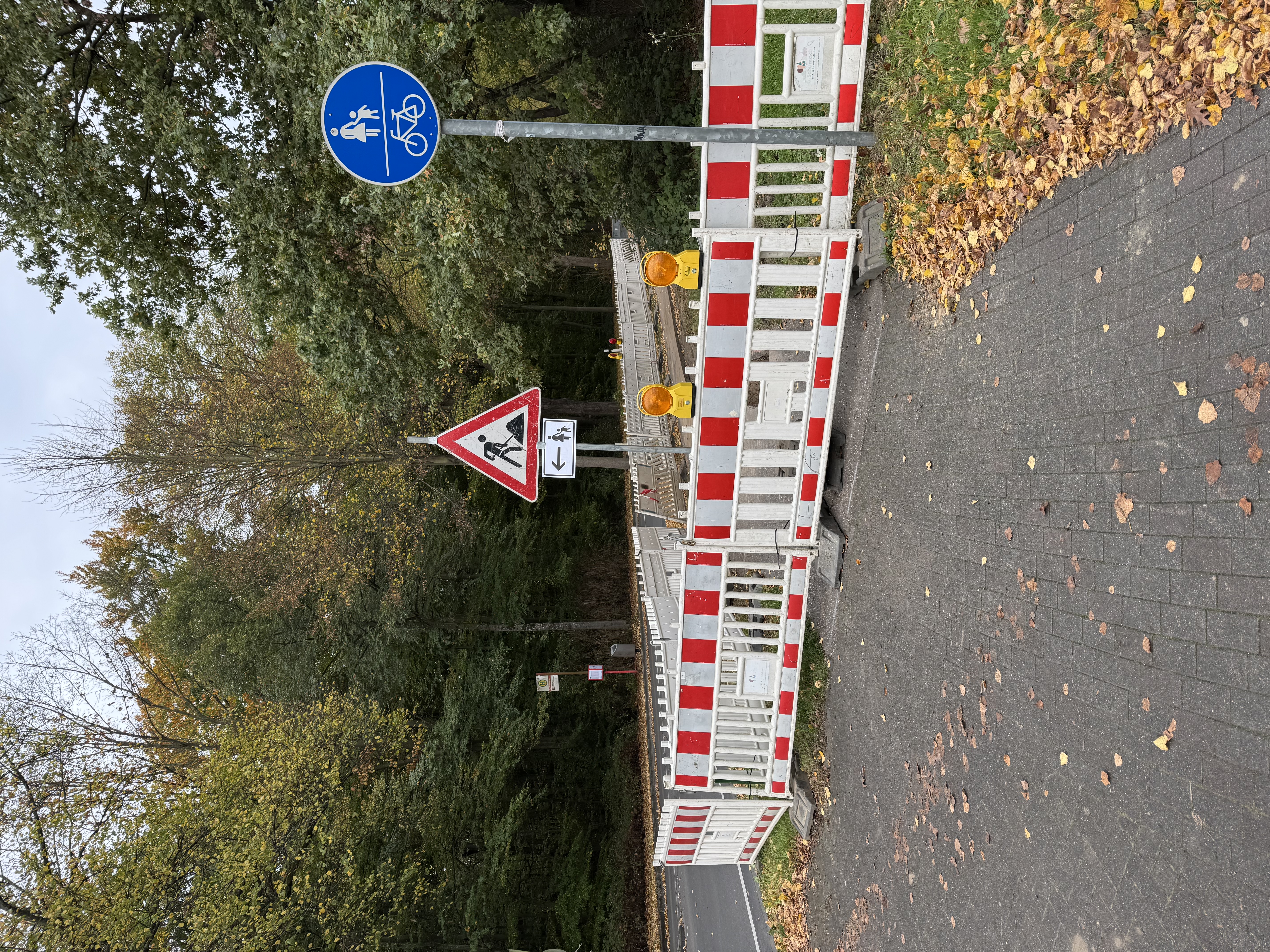 Aktuell ist die Baustelle offensichtlich regelwidrig eingerichtet. Auch das Gefahrzeichen Arbeitsstelle steht mit absolut ungenügendem Abstand direkt vor dem Baufeld und ist somit überhaupt nicht rechtzeitig wahrnehmbar.