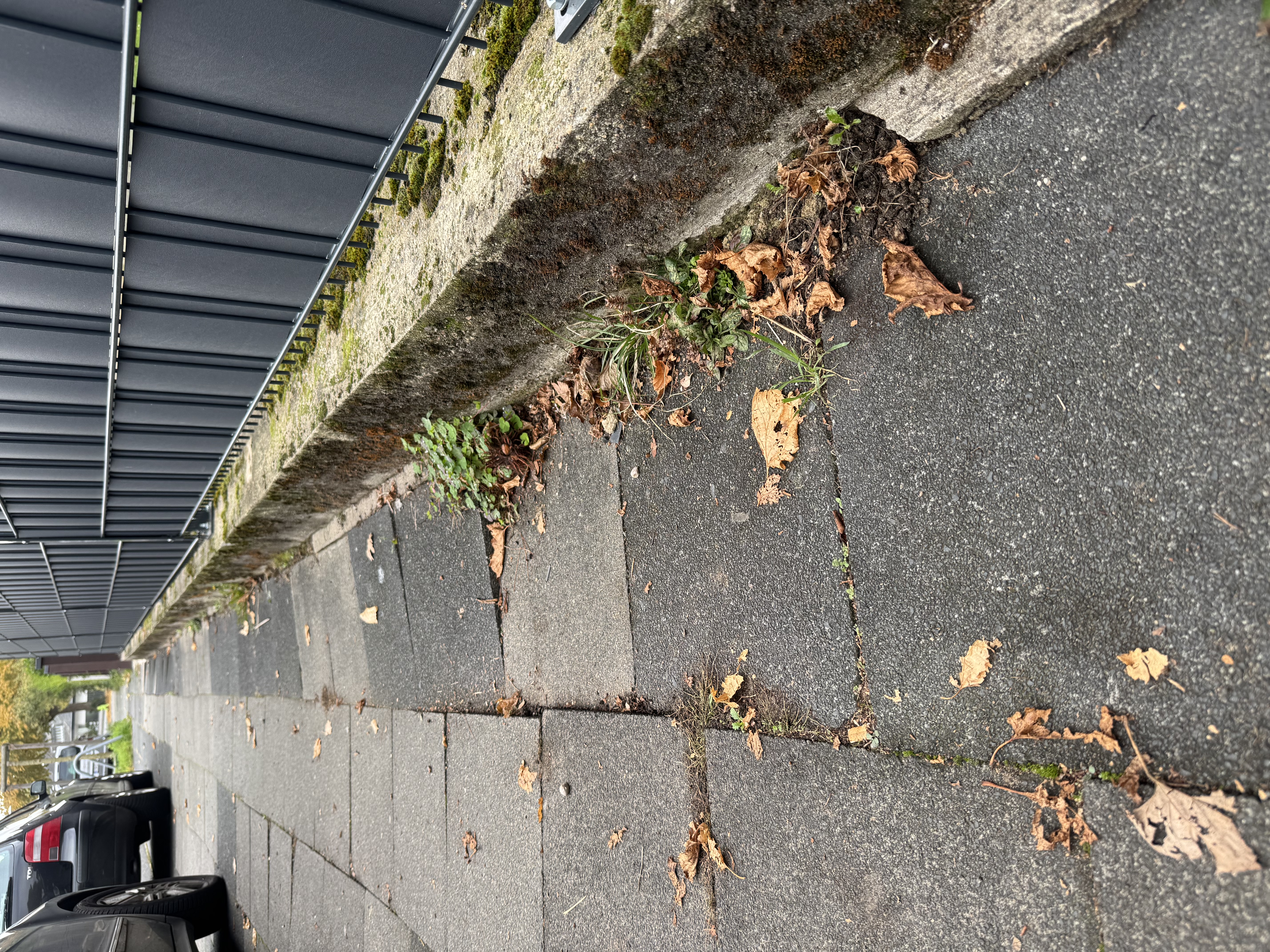 Der Bürgersteig gegenüber dem Haus mit der Nummer 15 (Hoffnungsthaler Straße Ecke Königsforststrasse) senkt sich und die Gehwegplatten sind zu Stolperstellen geworden