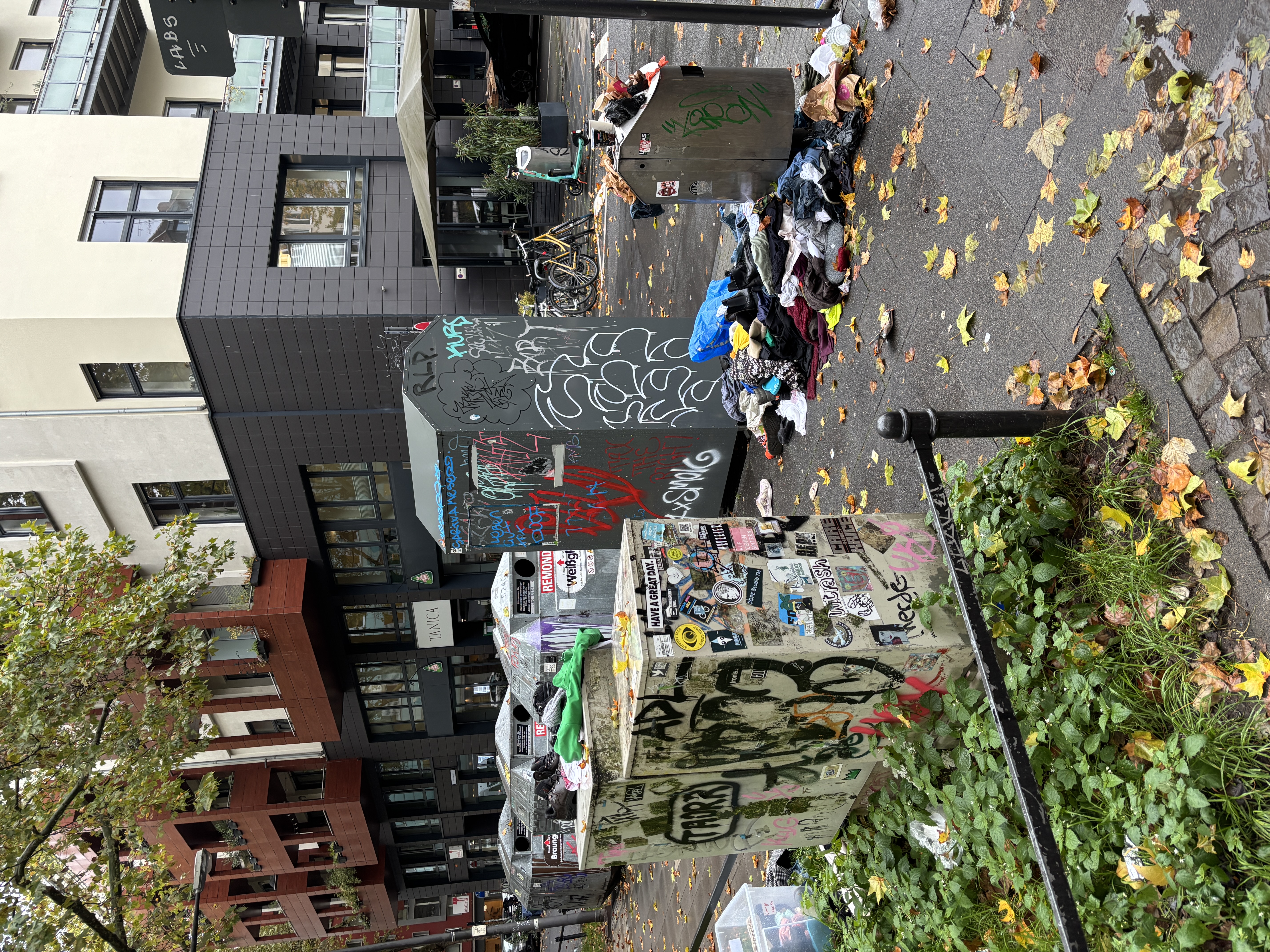 Happy monday! Mal wieder völlig vermüllt diese Ecke. Bitte reinigen und endlich mal einen alternativen kleidermülleimer oder 2 aufstellen! Danke.