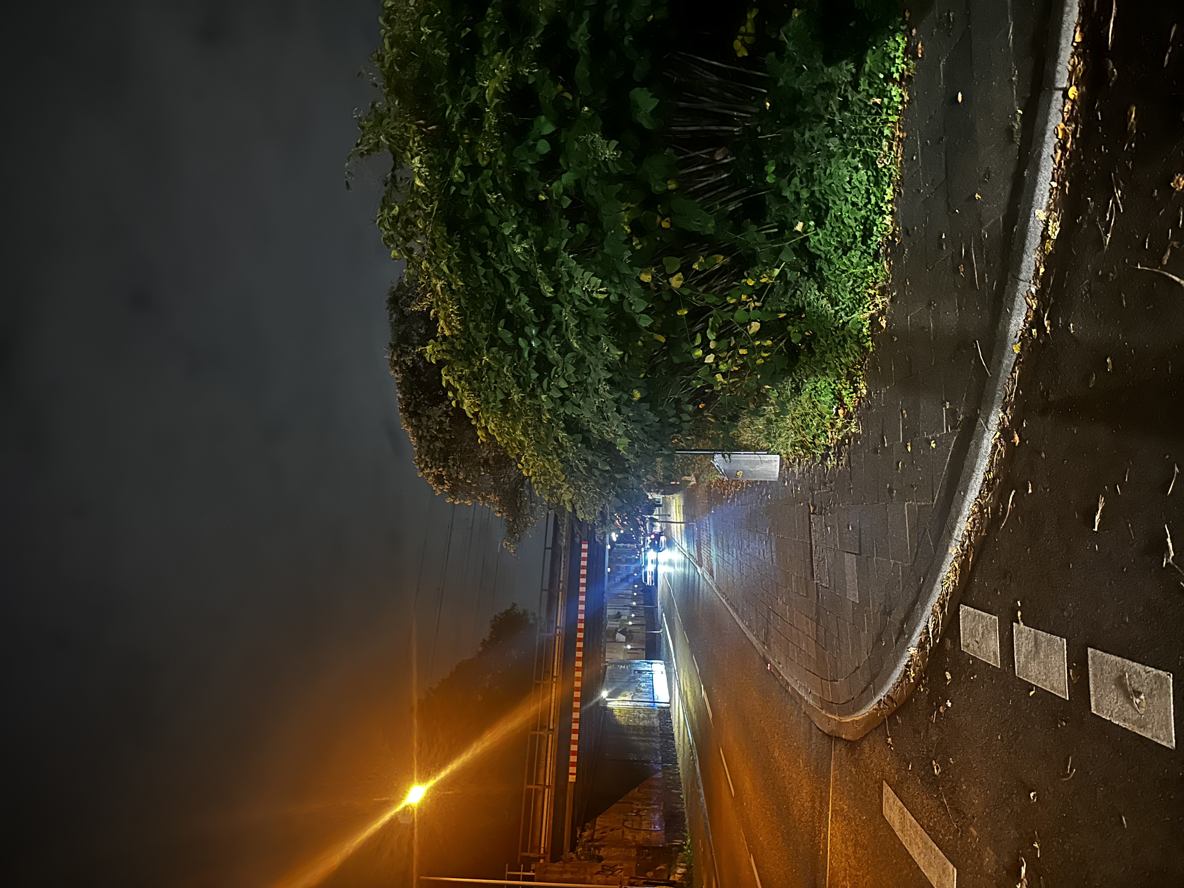 Hängt jetzt bei Regen schon ziemlich über dem Gehweg