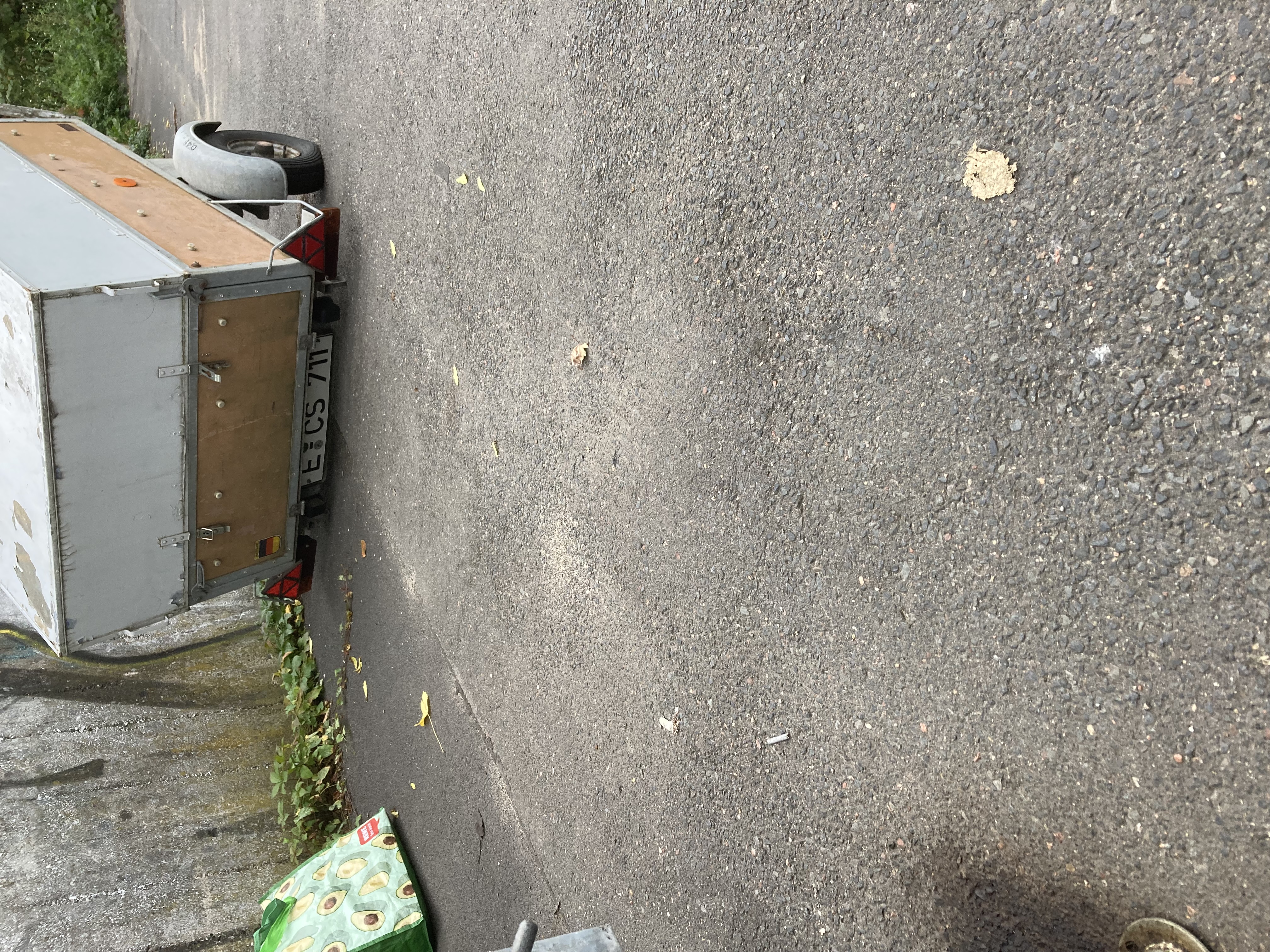 Auch dieser Anhänger, es ist der dritte jetzt gemeldete, steht kurz vor dem Wendehammer an der Begrenzungsmauer zu den Gleisen der HGK. Bitte um Entfernung.