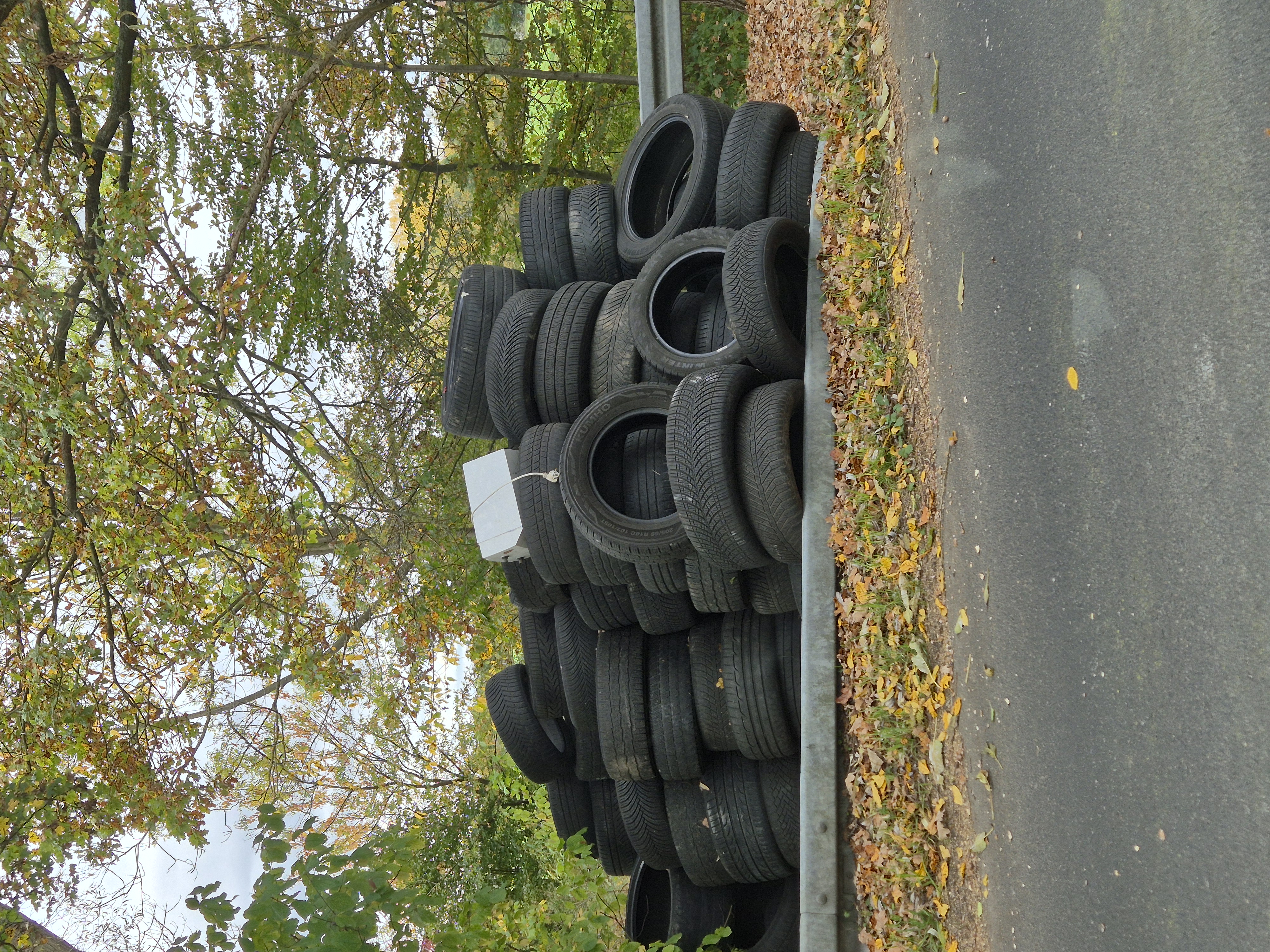 Zum zweiten Mal ein großes Altreifenlager in der landwirtschaftlichen Zufahrt am Frankenforstbach.