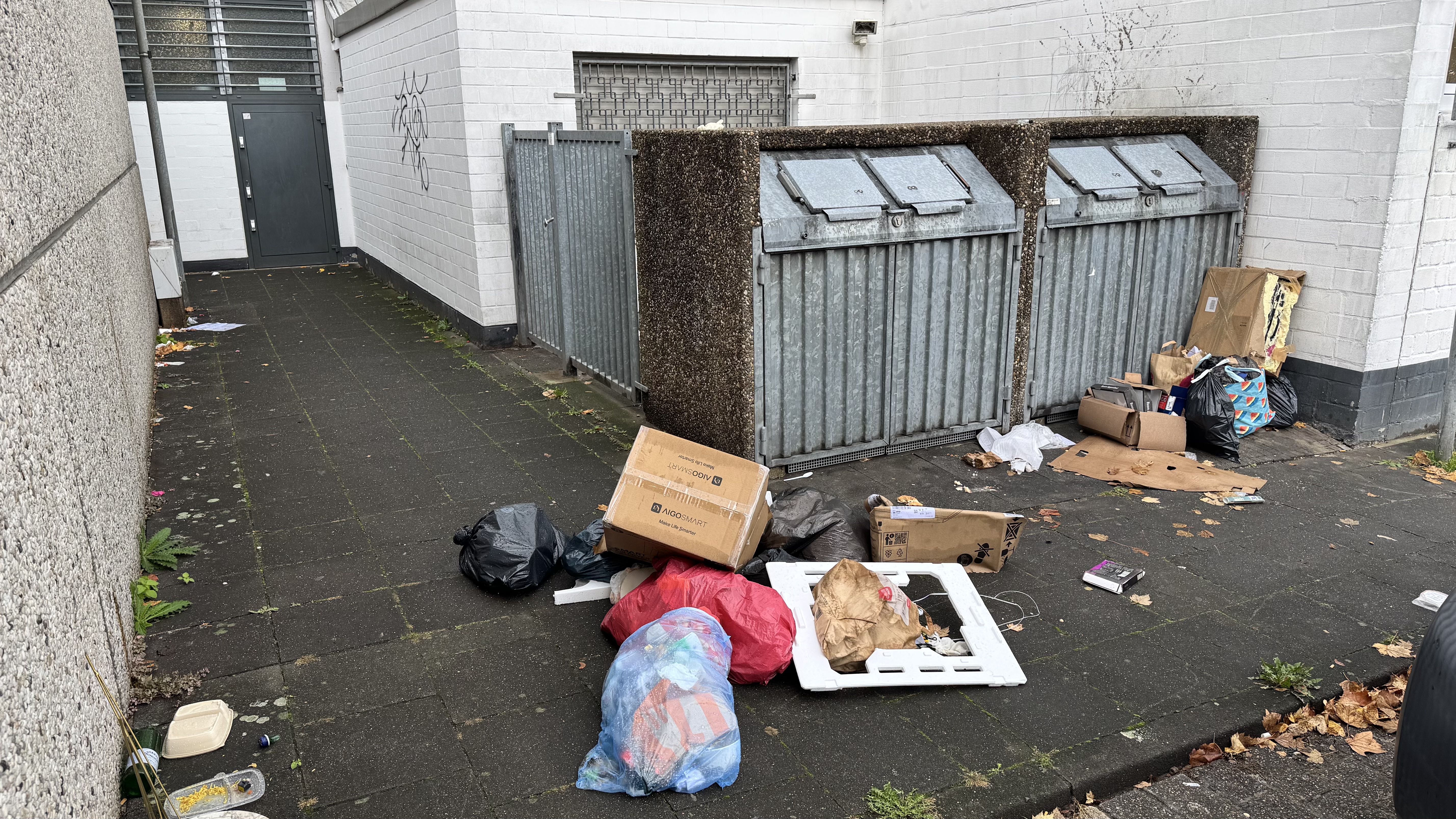 Schon wieder Müll von der Mietern Haus Görlinger Zentrum 12. Die GAG muss das unterbinden. Das Ärgernis besteht schon seit Jahren.