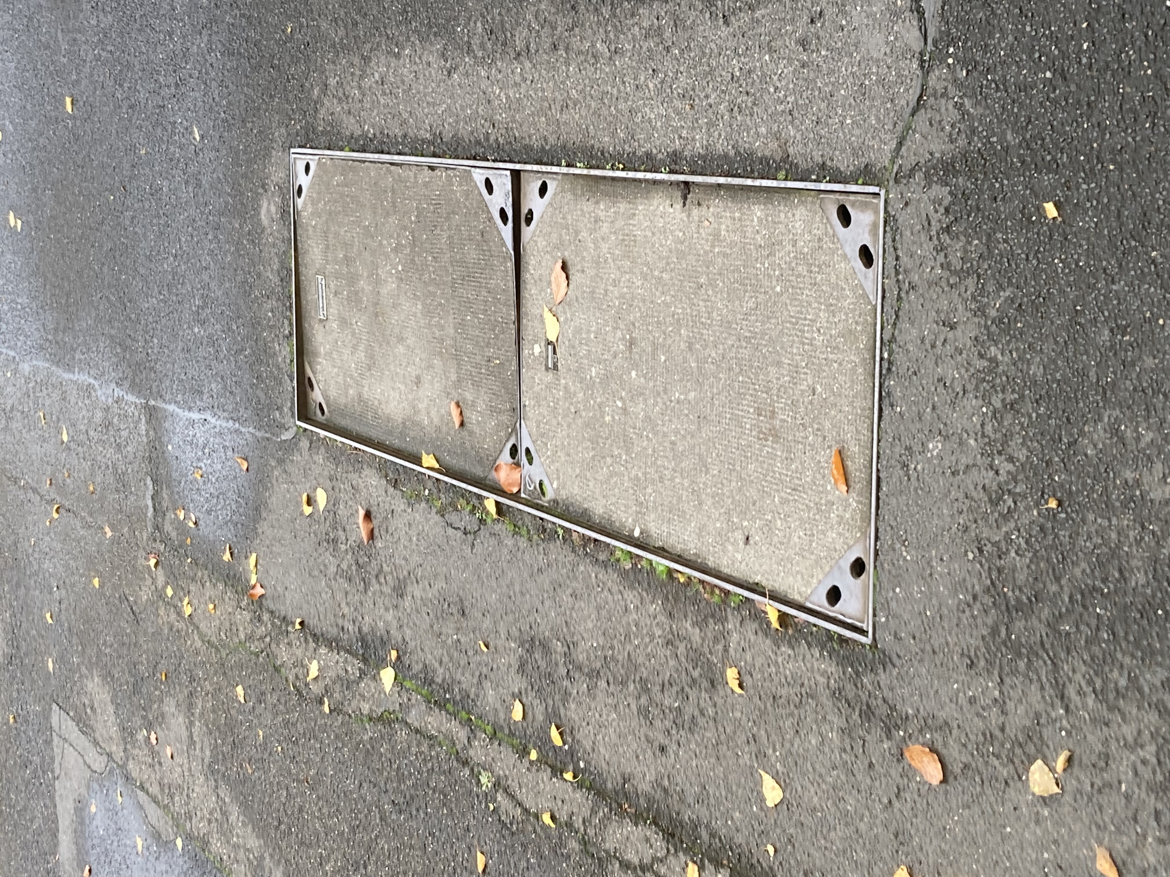 Die Abdeckung des Kabelschachts liegt nur noch locker auf und wird durch die herumfahrenden PKW zunehmend geschädigt. Hier muss dringend nachgebessert werden.