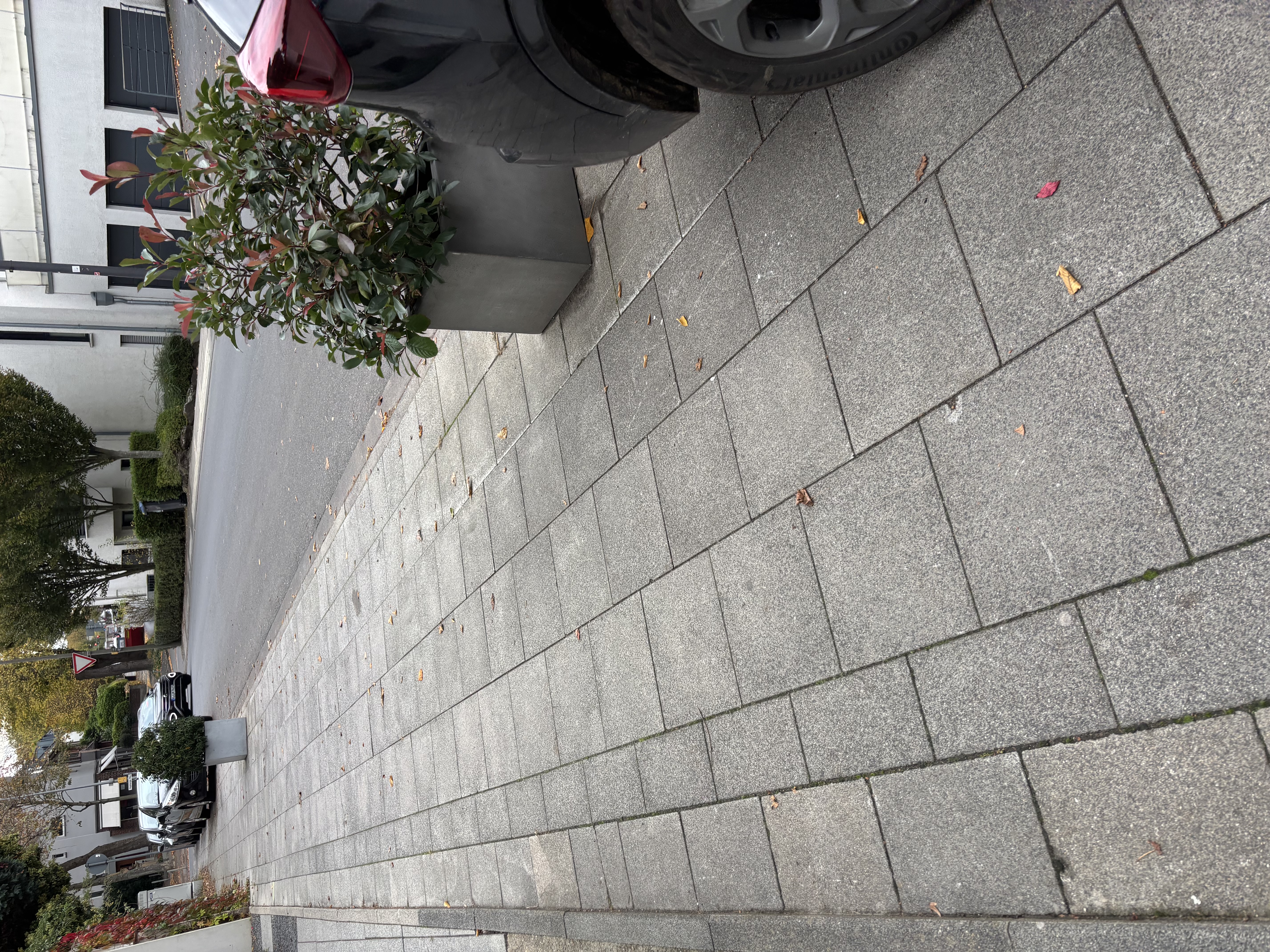 An der angegebenen Adresse stehen durch dem Eigentümer des Hauses Betonblumenkästen auf dem öffentlichen Gehweg diese Ragen soweit darüber hinaus, dass diese nicht mehr auf dem eigenen Gelände stehen.