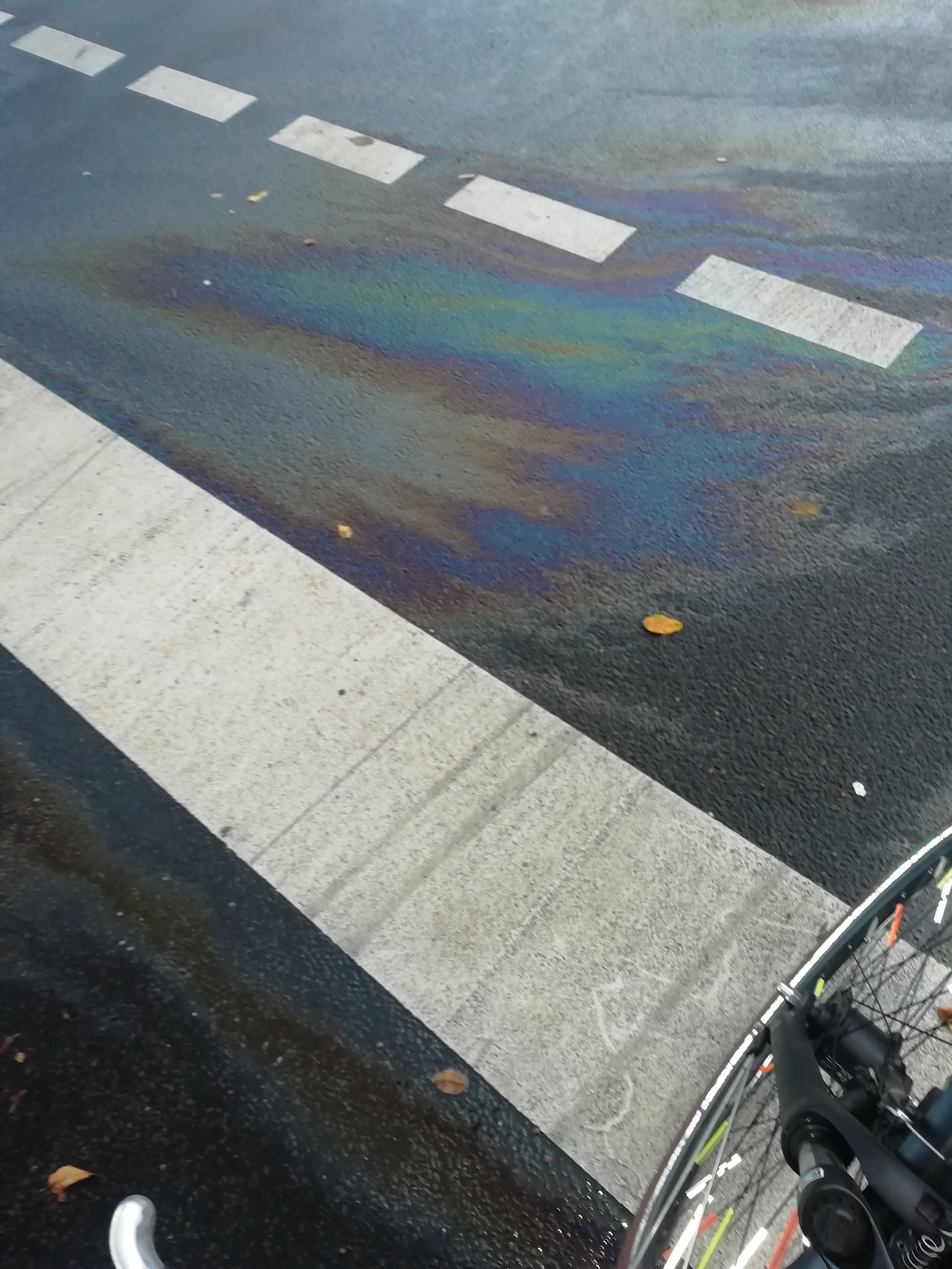 Ölspur? Auf Abbiegespur von Heidelberger nach links zur Frankfurter