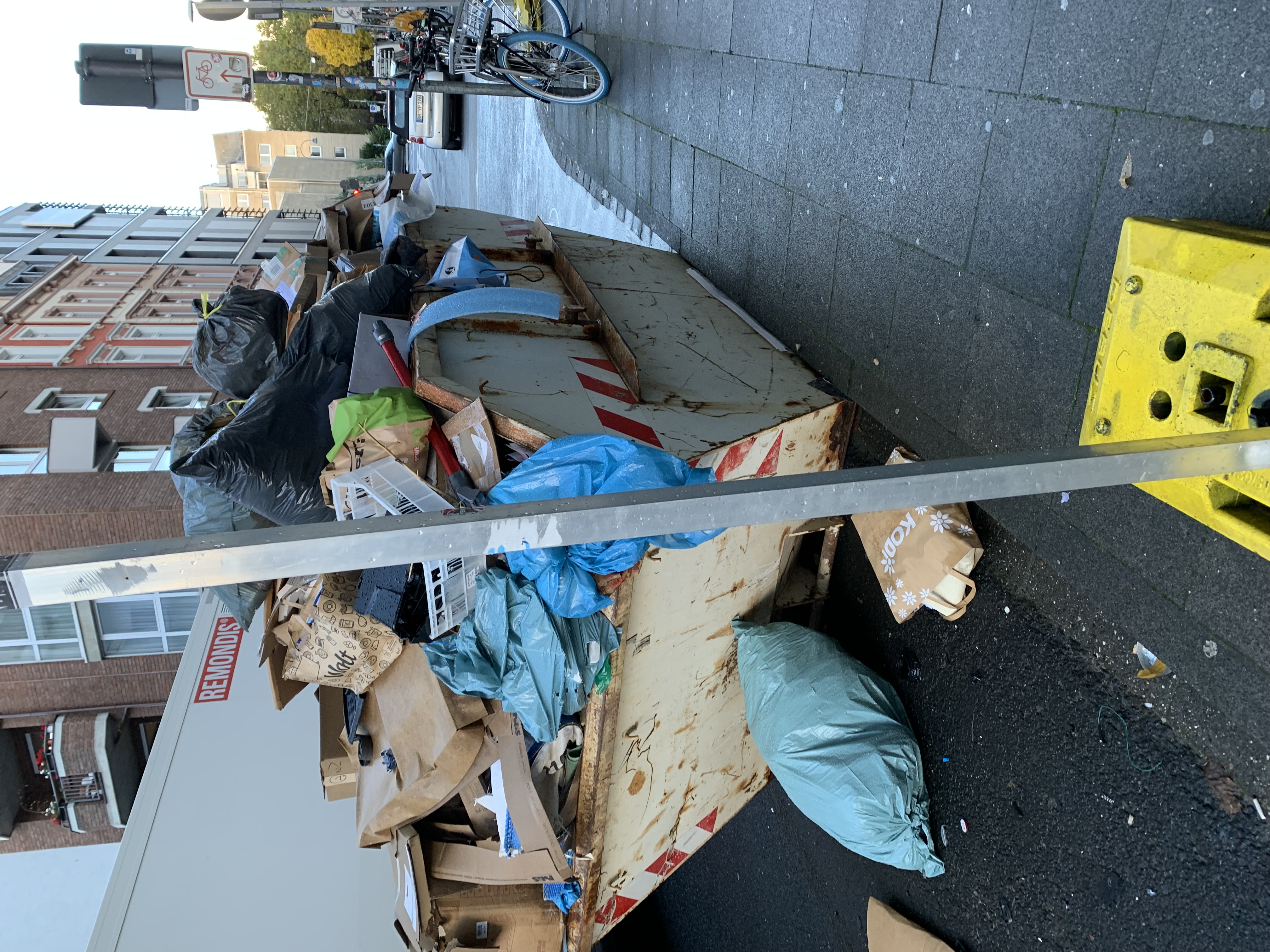Dieser übervolle Container steht schon seit Wochen/Monaten an dieser Stelle. Verantwortlich dafür ist die WohnungsgesellschaftGlobalact, die schon seit Jahren Umbauarbeiten in den Häusern vornehmen und regelmäßig übervolleContainer stehen lassen.