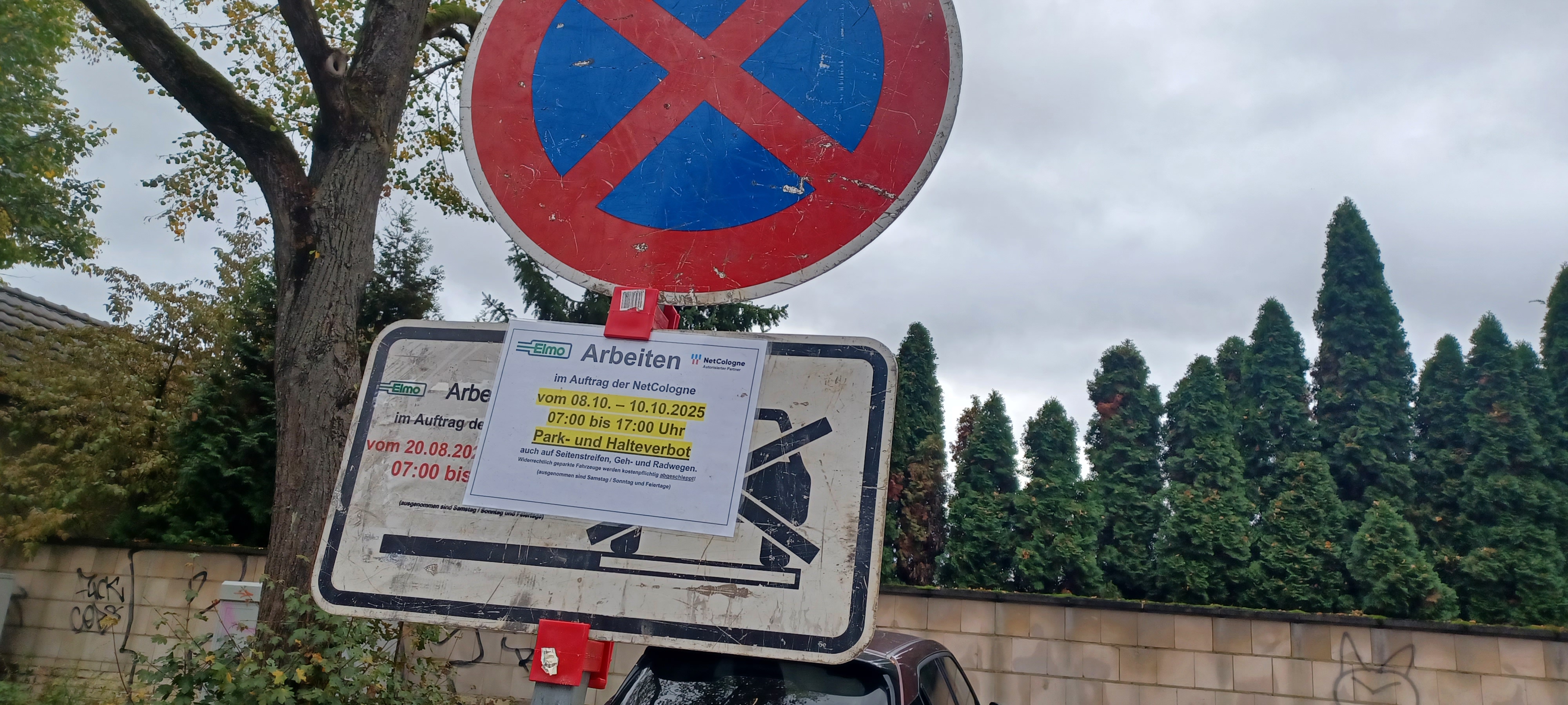 Vom 08.- 10.10. Wurden hier mehrere Parkplätze gesperrt.Mittlereeile ist der 23.und die Absperrungen stehen immer noch.Das erste ist heute schon umgekippt.Wann werden die endlich abgeholt?