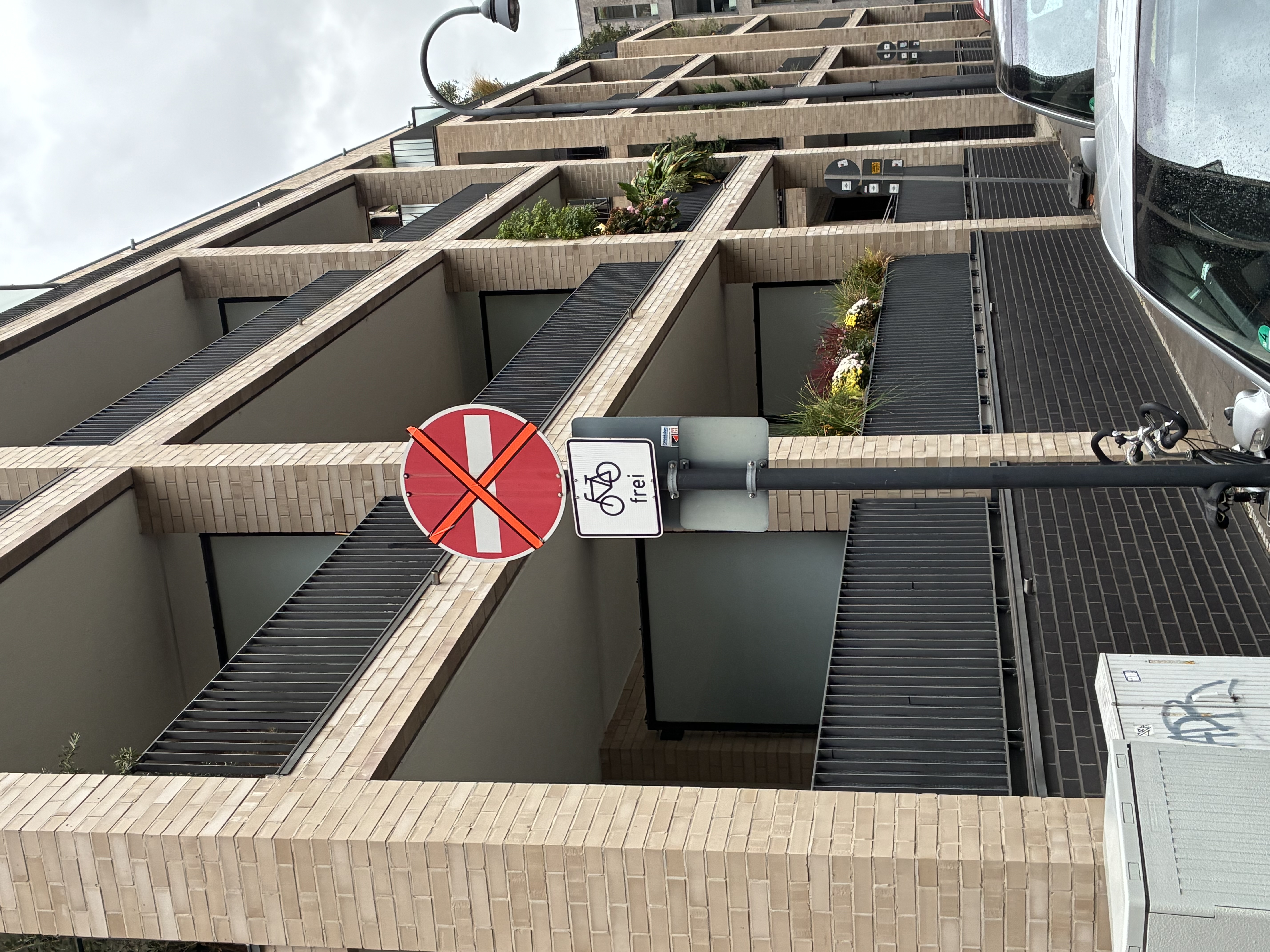 Nach dem Stadtmarathon vor drei Wochen wurde vergessen, das „Durchfahrt-gesperrt-Schild“ wieder in Betrieb zu nehmen. Sehr gefährlich.