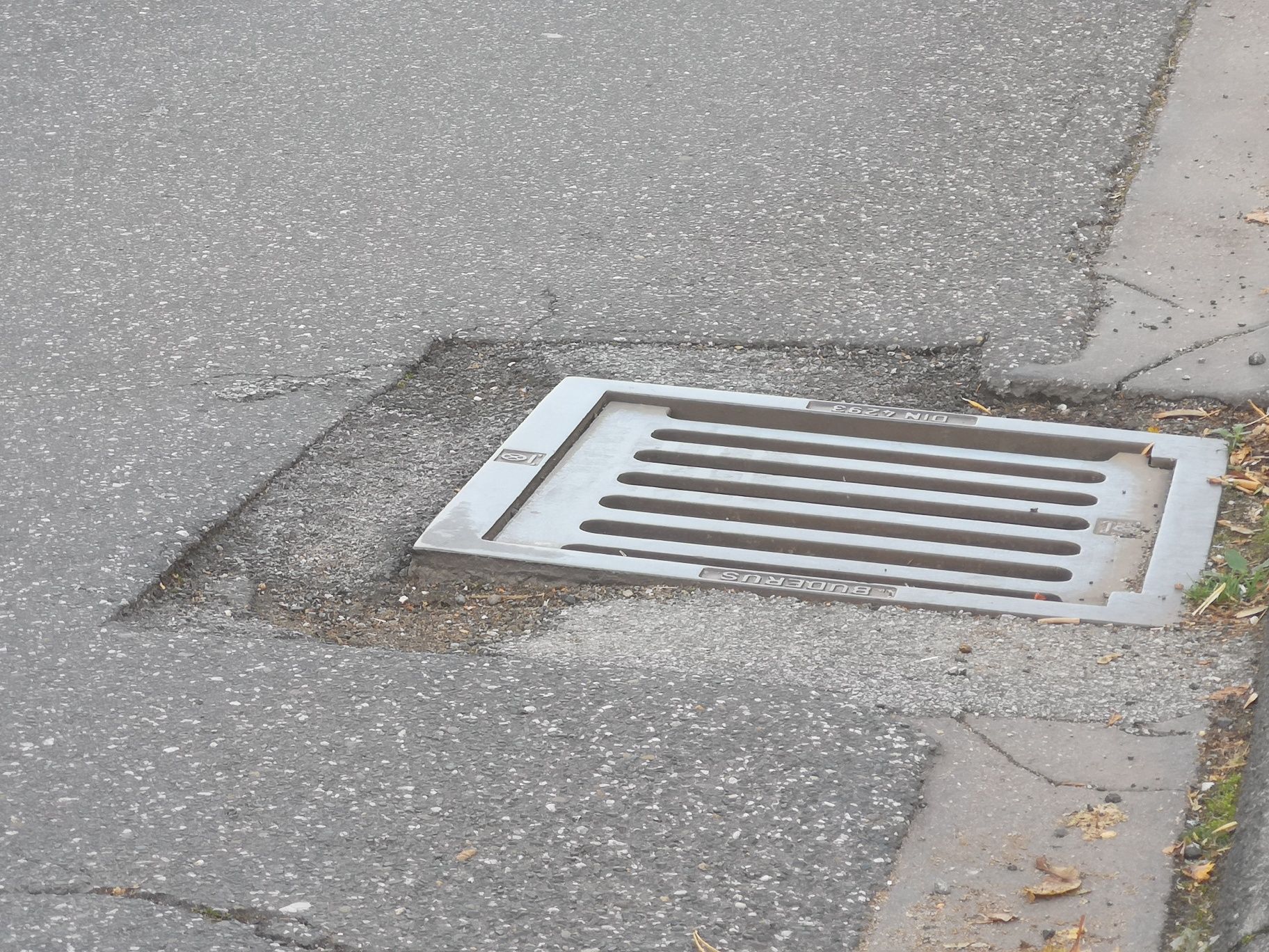 Schlagloch durch abgesenkten scharfkantigen Gully