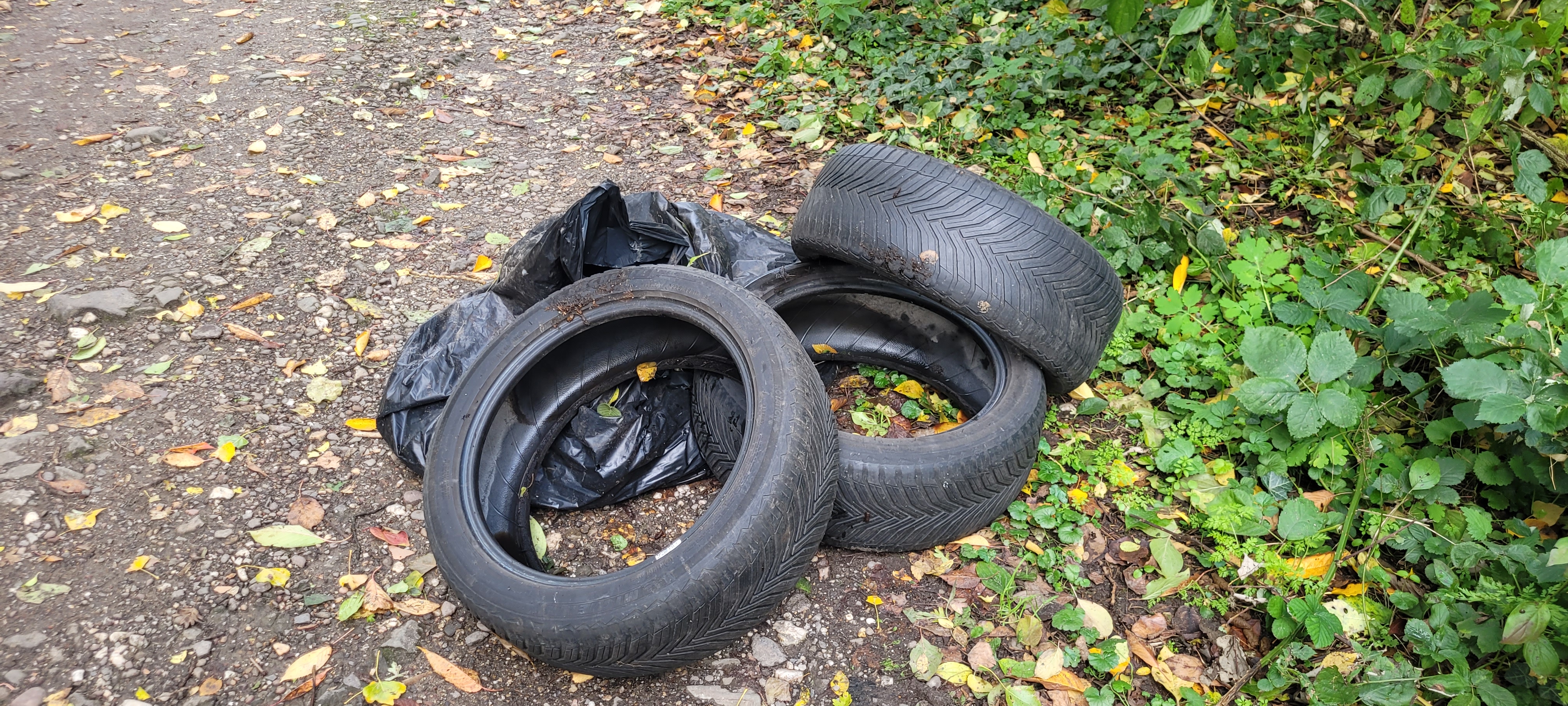 Altreifen und Müllsäcke in der verlängerten Gilgaustraße abgelegt