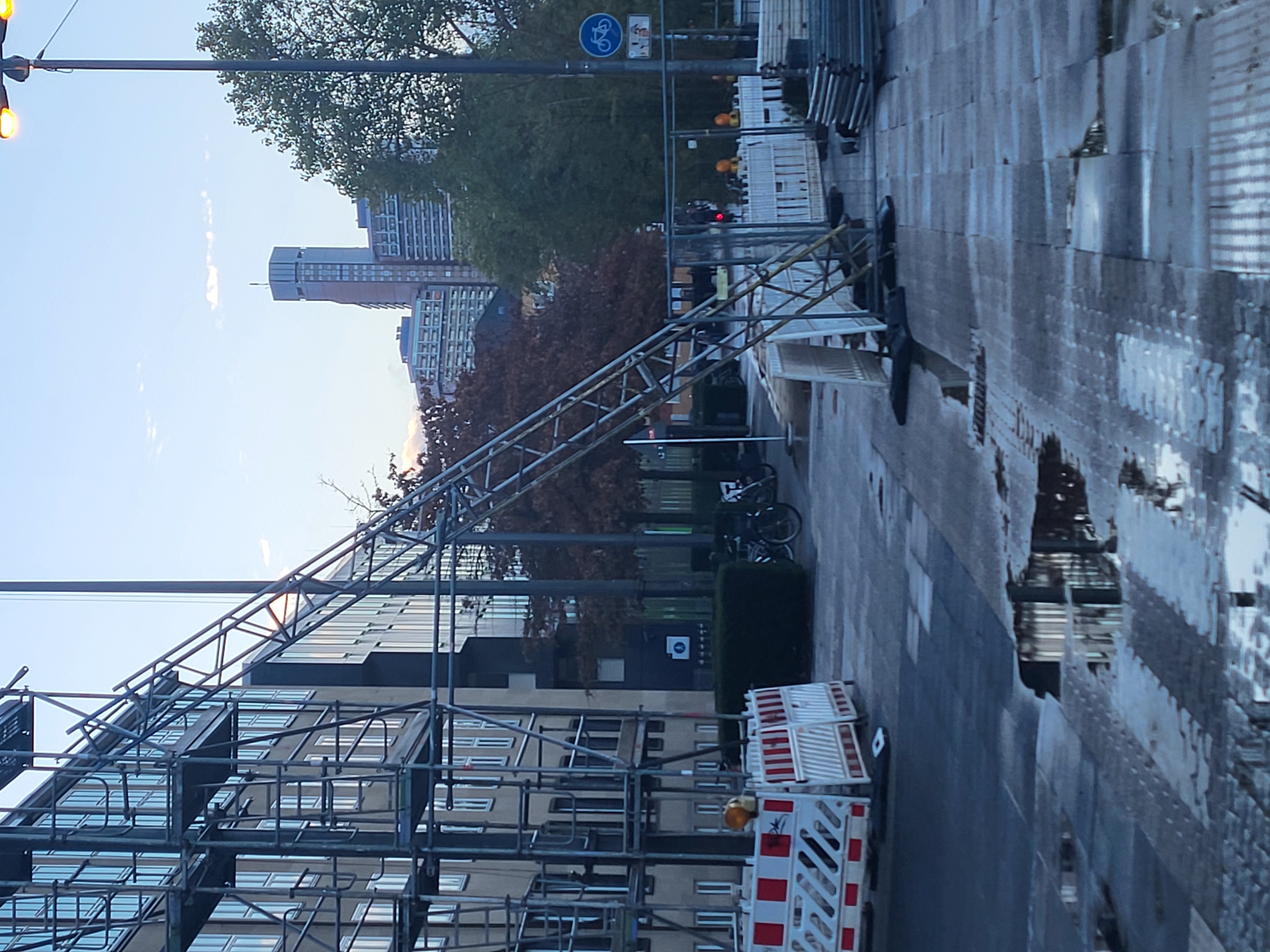 Warum baut man solche Metallstützen so auf das man als Radfahrer mit dem Kopf anstoßen kann. Das ist eigentlich ein Radweg in beide Richtungen ich habe keine Beschilderung gesehen die davor warnt im Dunkeln bei Regen extrem gefährlich