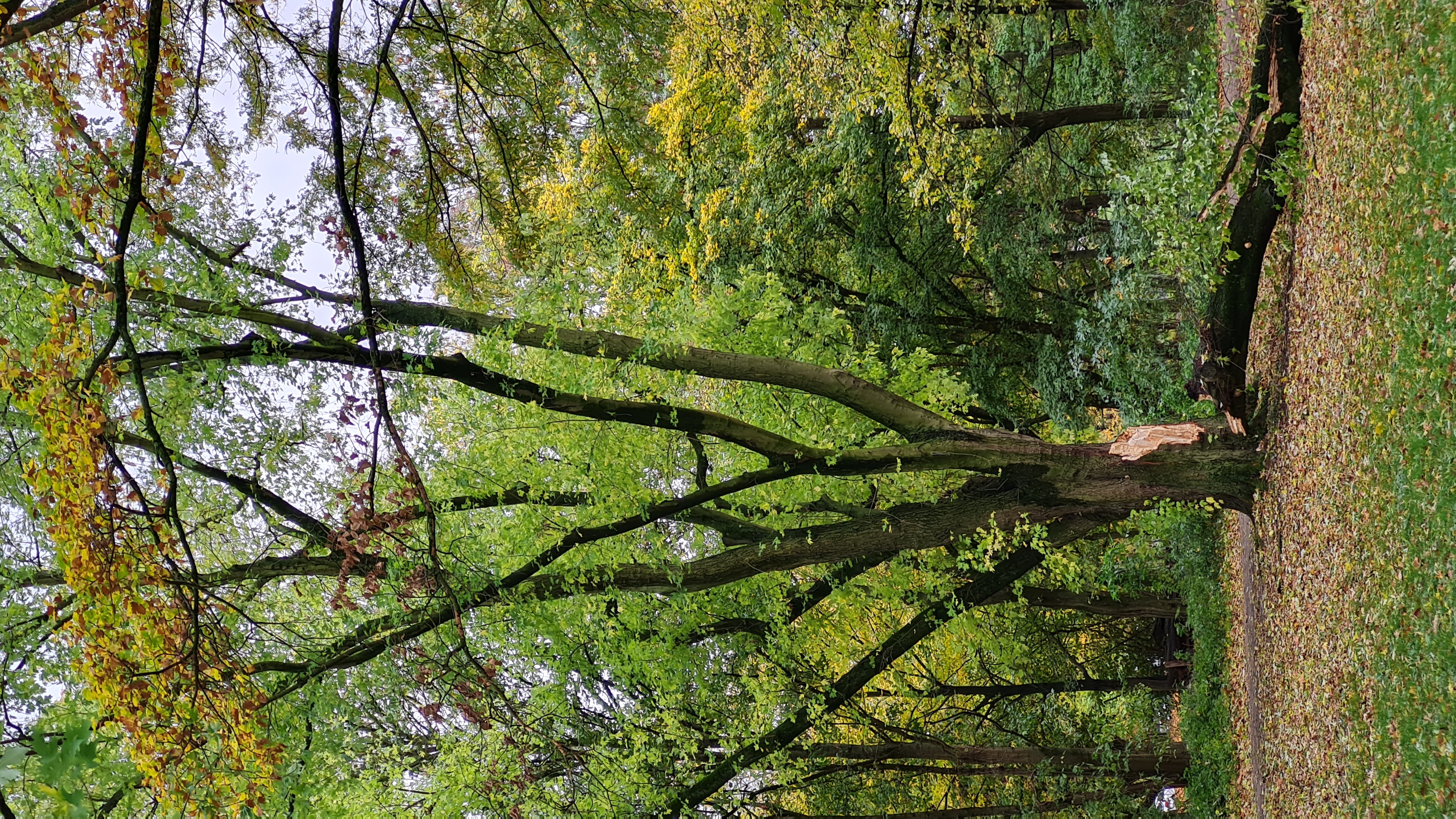 Hier ist an einem Baum ein sehr großer Ast abgebrochen. Es steht zu befürchten, dass weitere Baumteile während des Sturms abreißen.