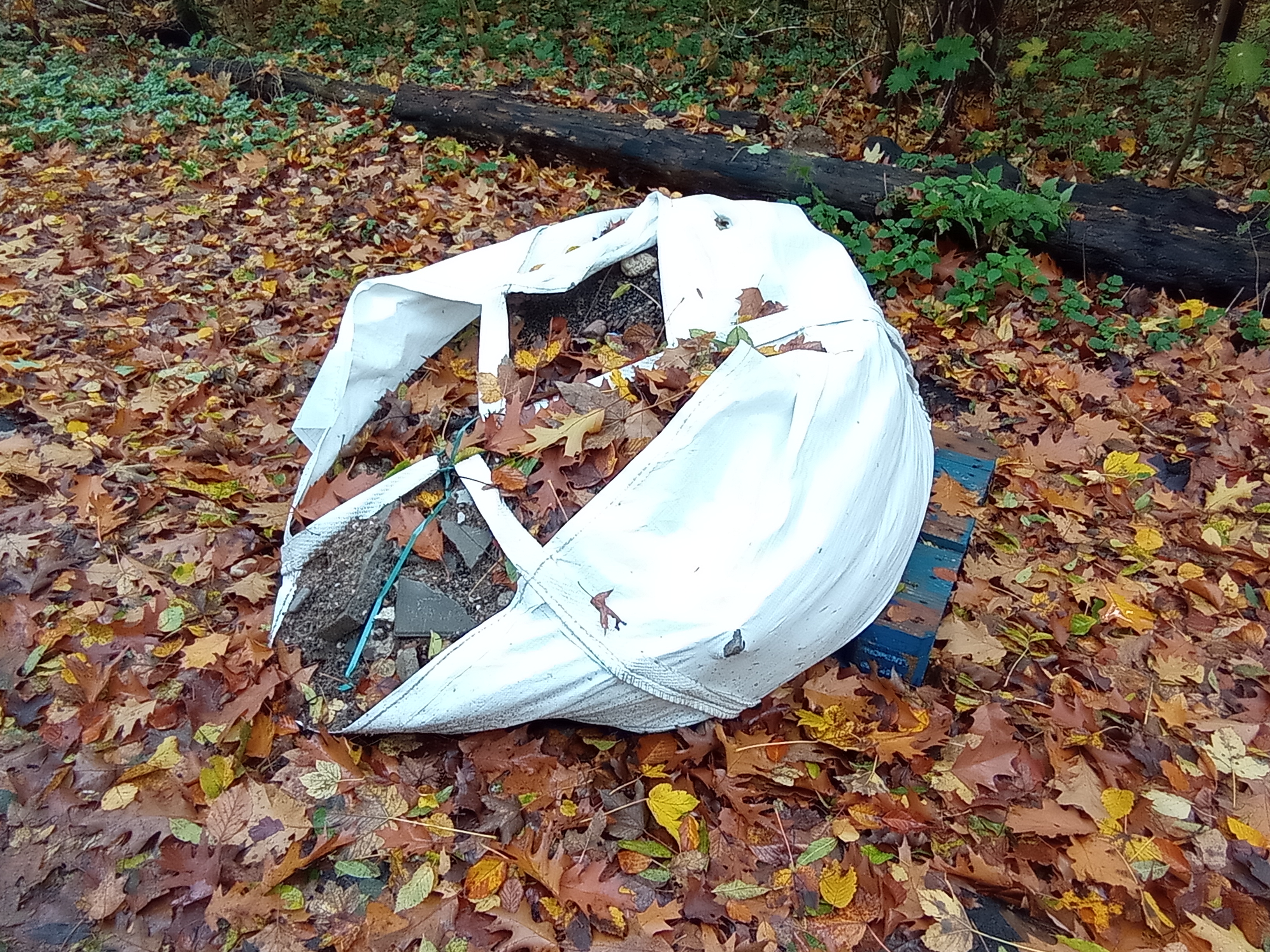 leider liegt entweder immer noch oder schon wieder ein großer Sack mit Bauschutt (?!) und Palette an dieser Stelle.